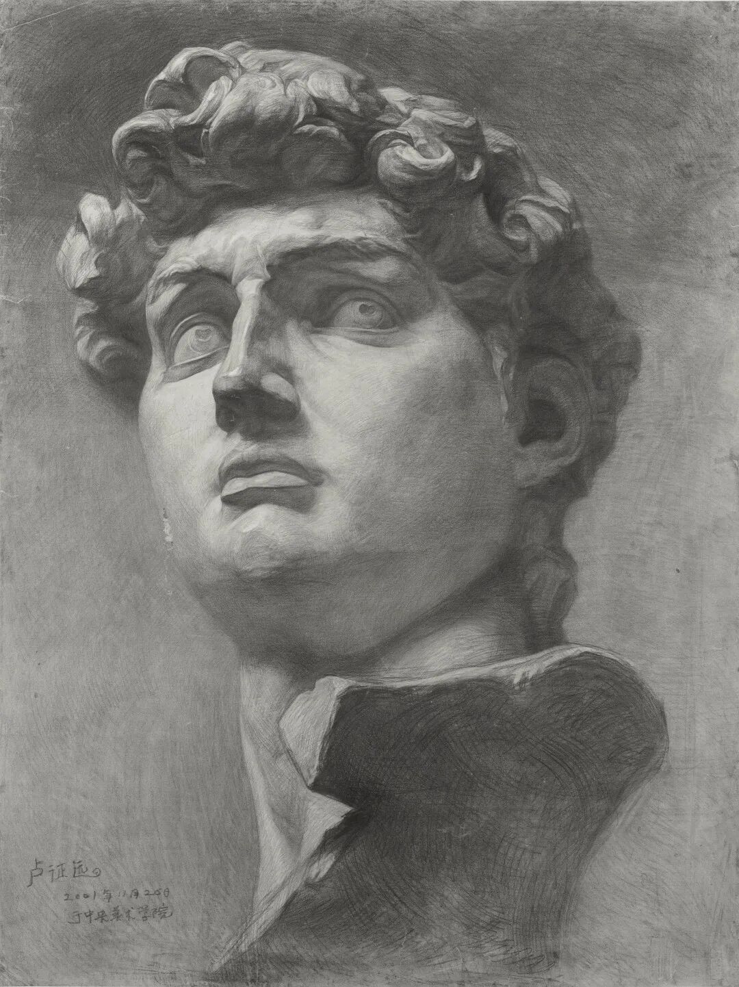 卢征远 《大卫石膏》 110×70cm 纸本铅笔 2001年 指导教师:袁元