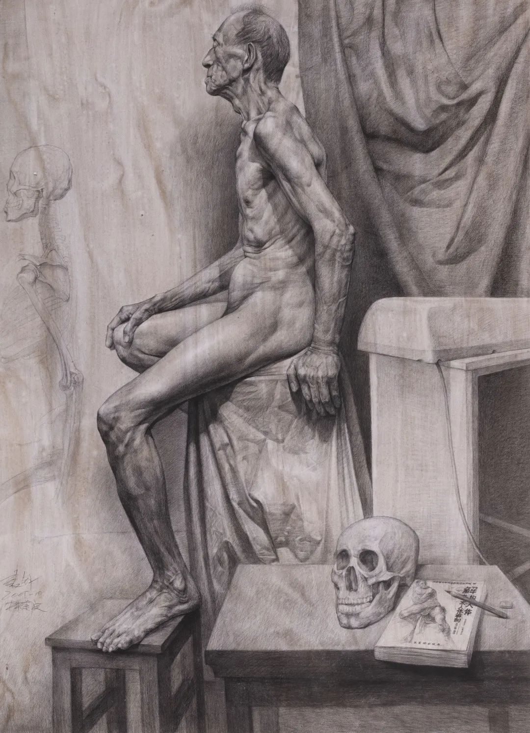张均 《解剖课程练习》 104×76cm 纸本铅笔 2005年 指导教师:格·伊·马纳谢罗夫、伊·米·克拉夫佐夫