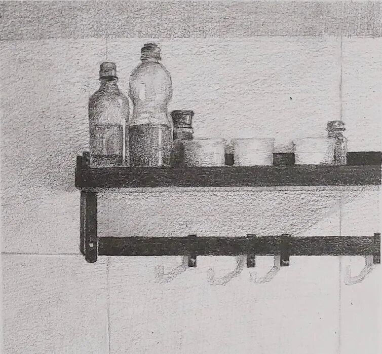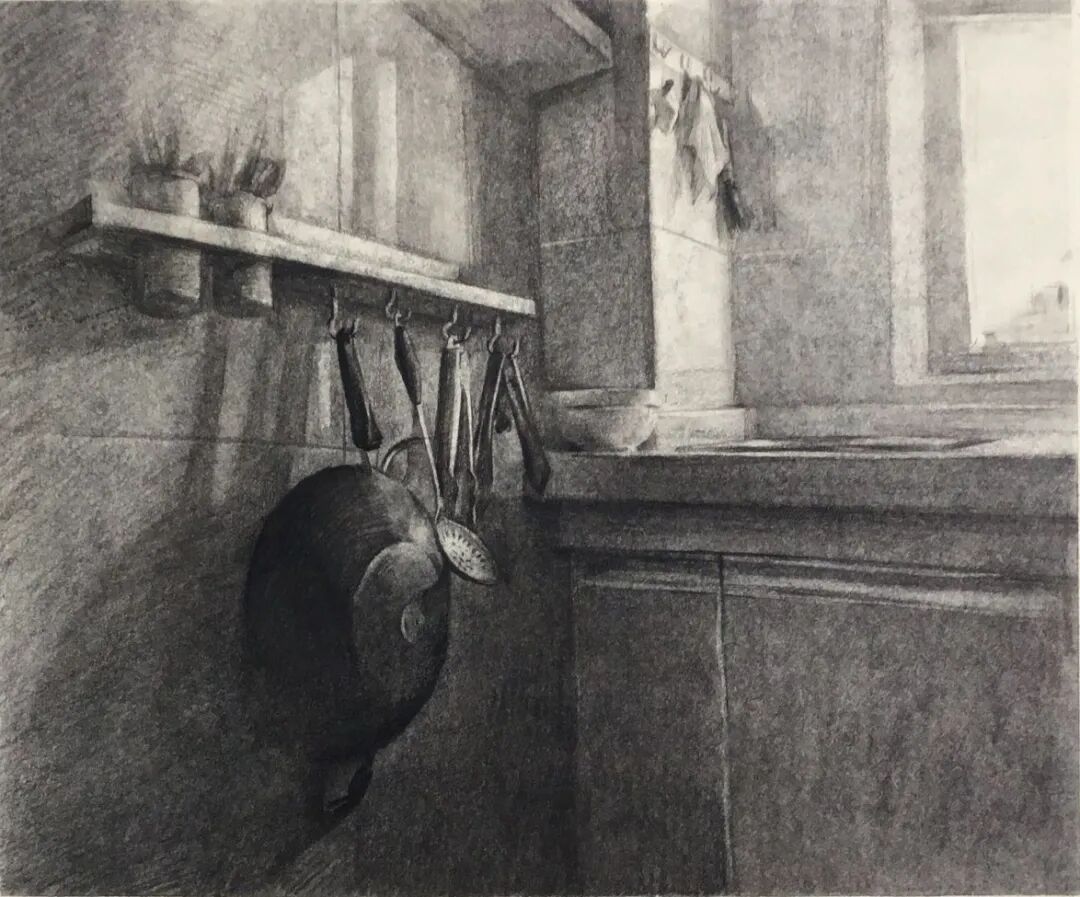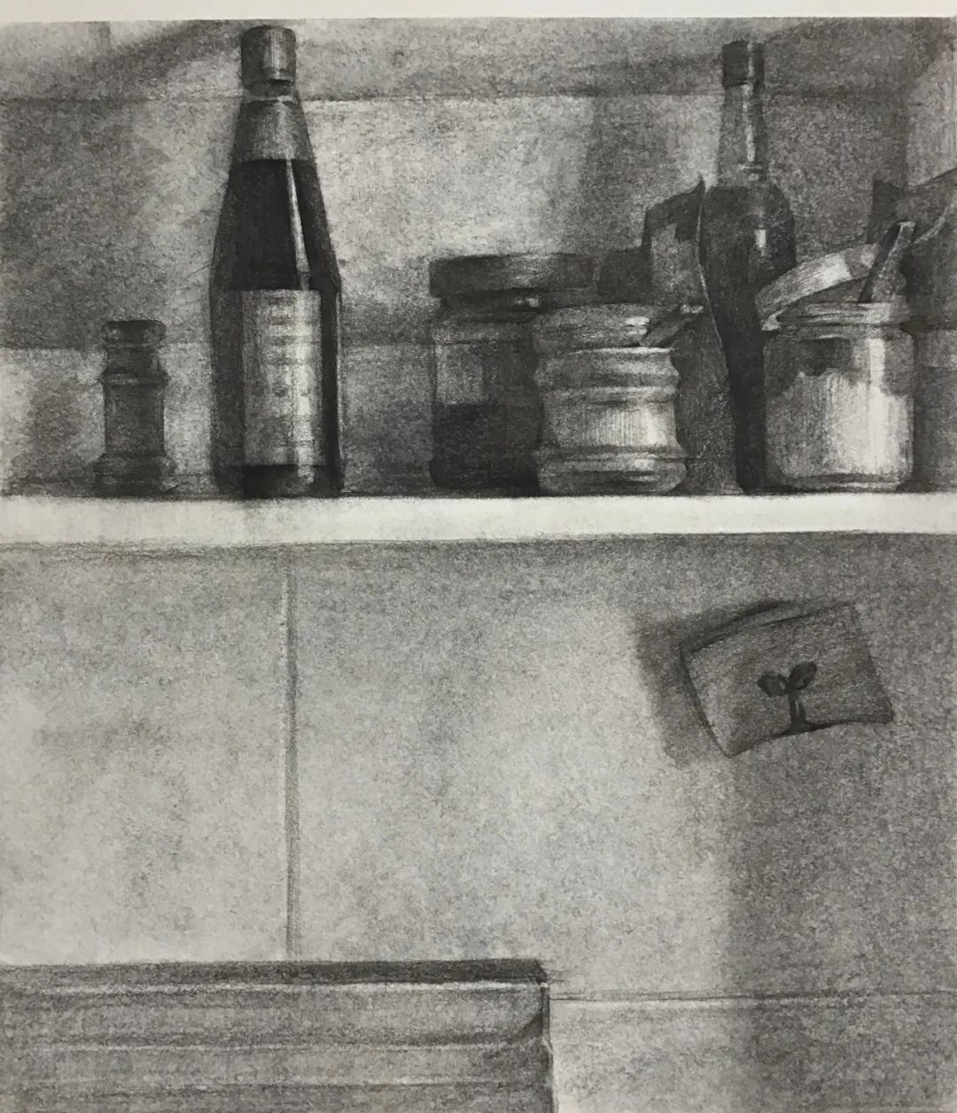 郑江 《静物组合》 90×120cm 纸本炭笔、色粉 2004年 指导教师:叶南