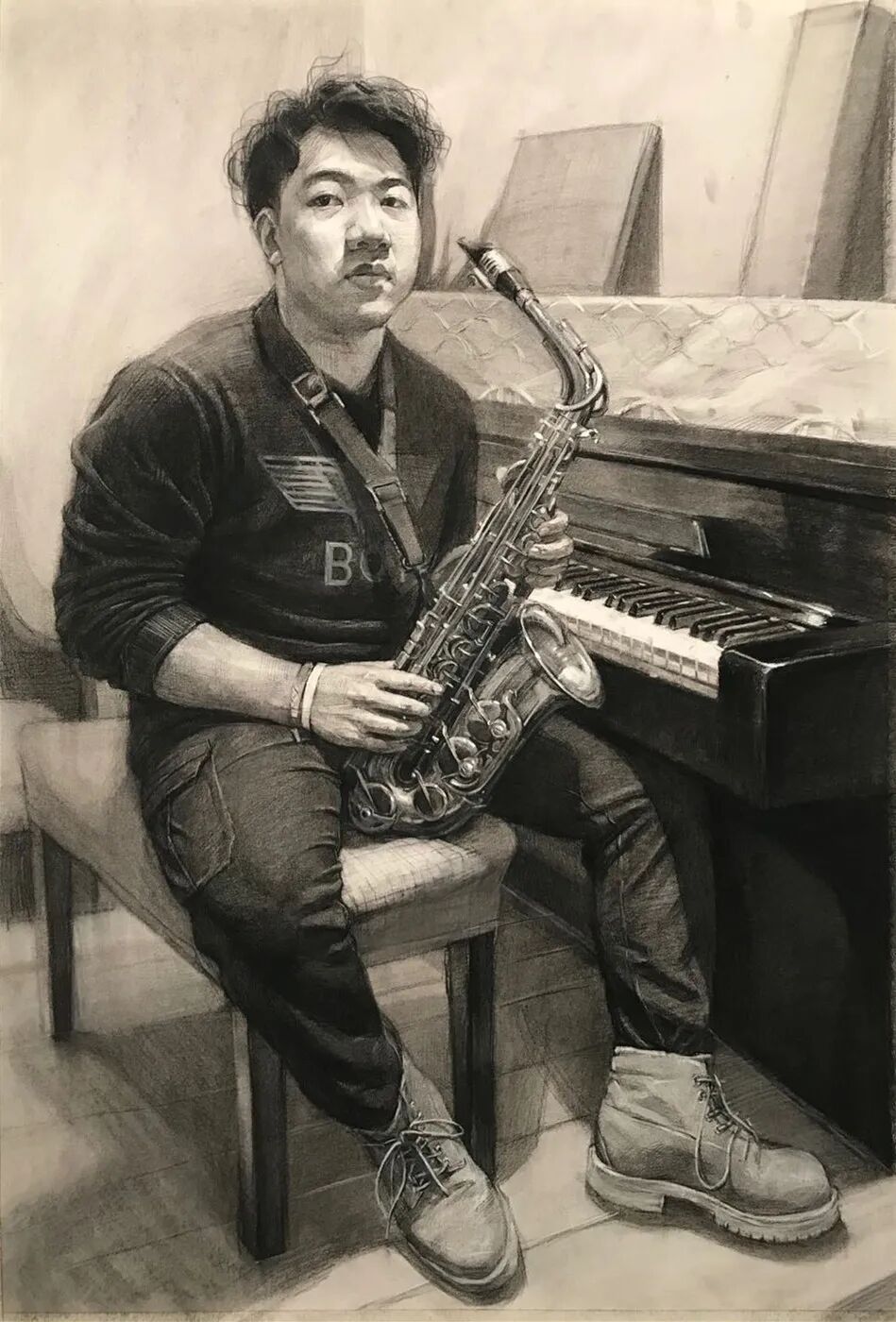 张云亮 《男人像》 116×74cm 纸本 2018年 指导教师:王伯勋