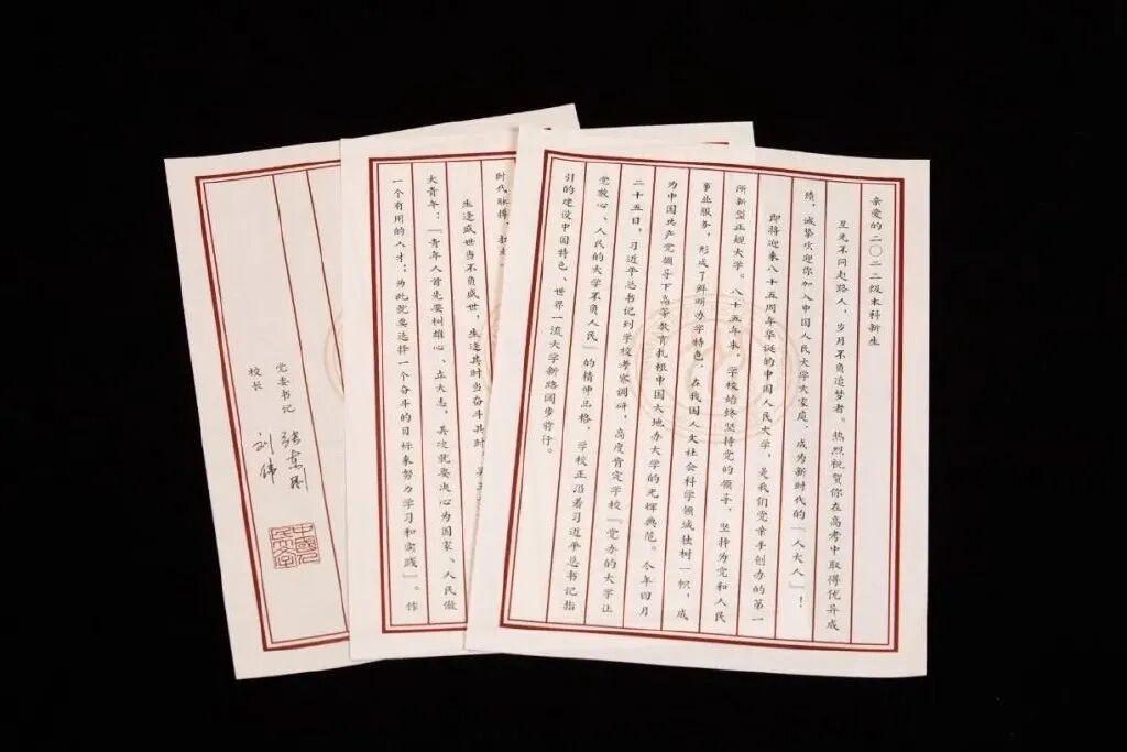 中国美术学院寄给学子们的录取通知书封面上是林风眠先生所题“为艺术战”四字,通知书的设计灵感源自国立艺专时期的信纸,上面还写着“国美四句教”:介绍西洋艺术、整理中国艺术、调和东西艺术、创作时代艺术。