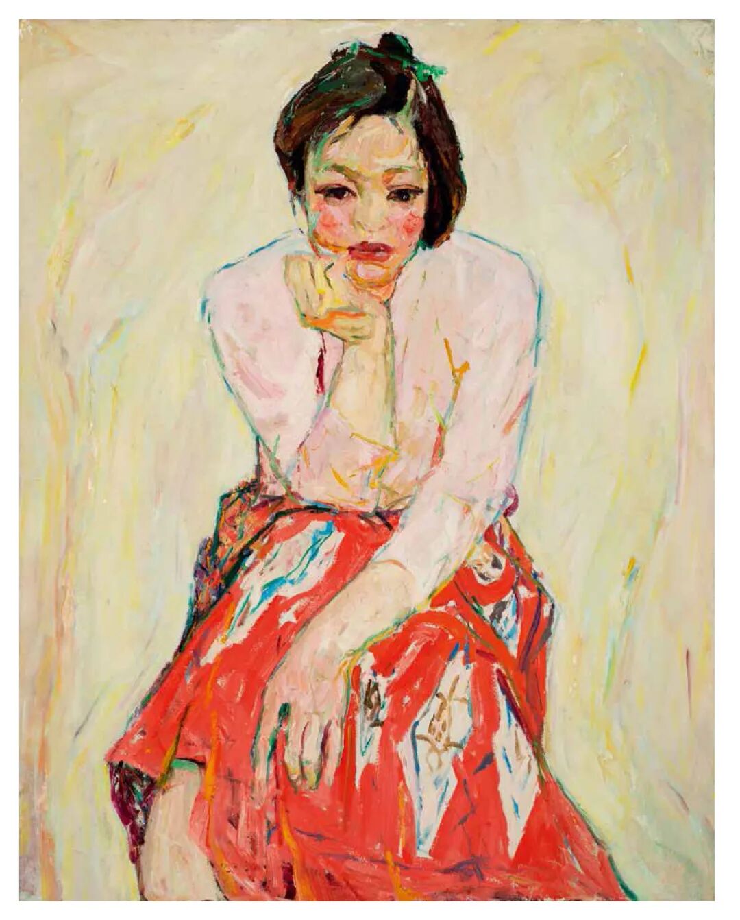 罗尔纯 红裙女人像 布面油彩 / 93cm×73cm / 1980