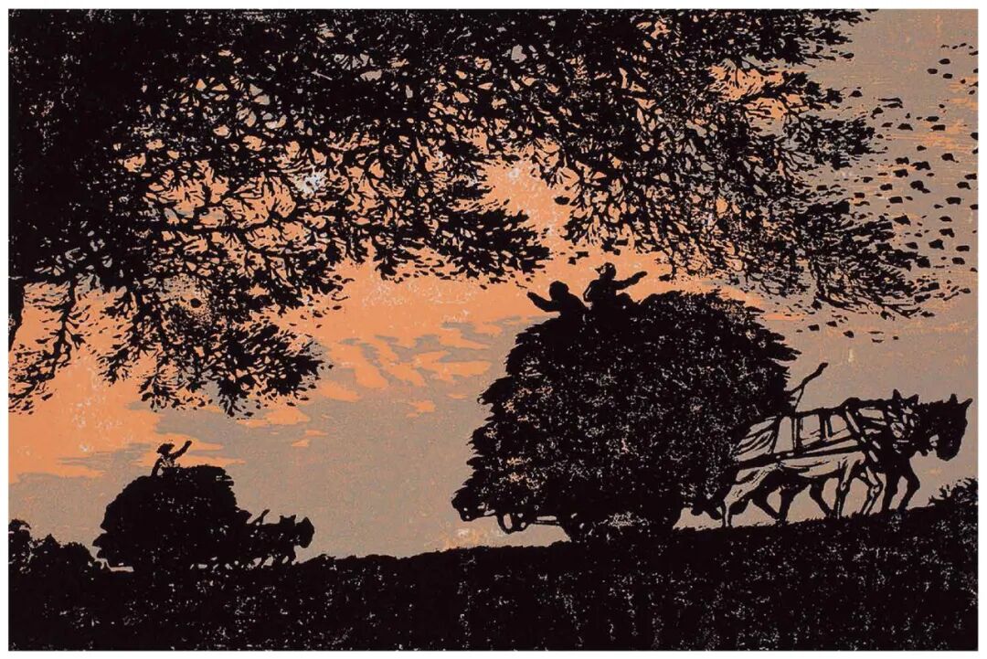 王 琦 晚归 木版套色 / 17cm×24.3cm / 1955