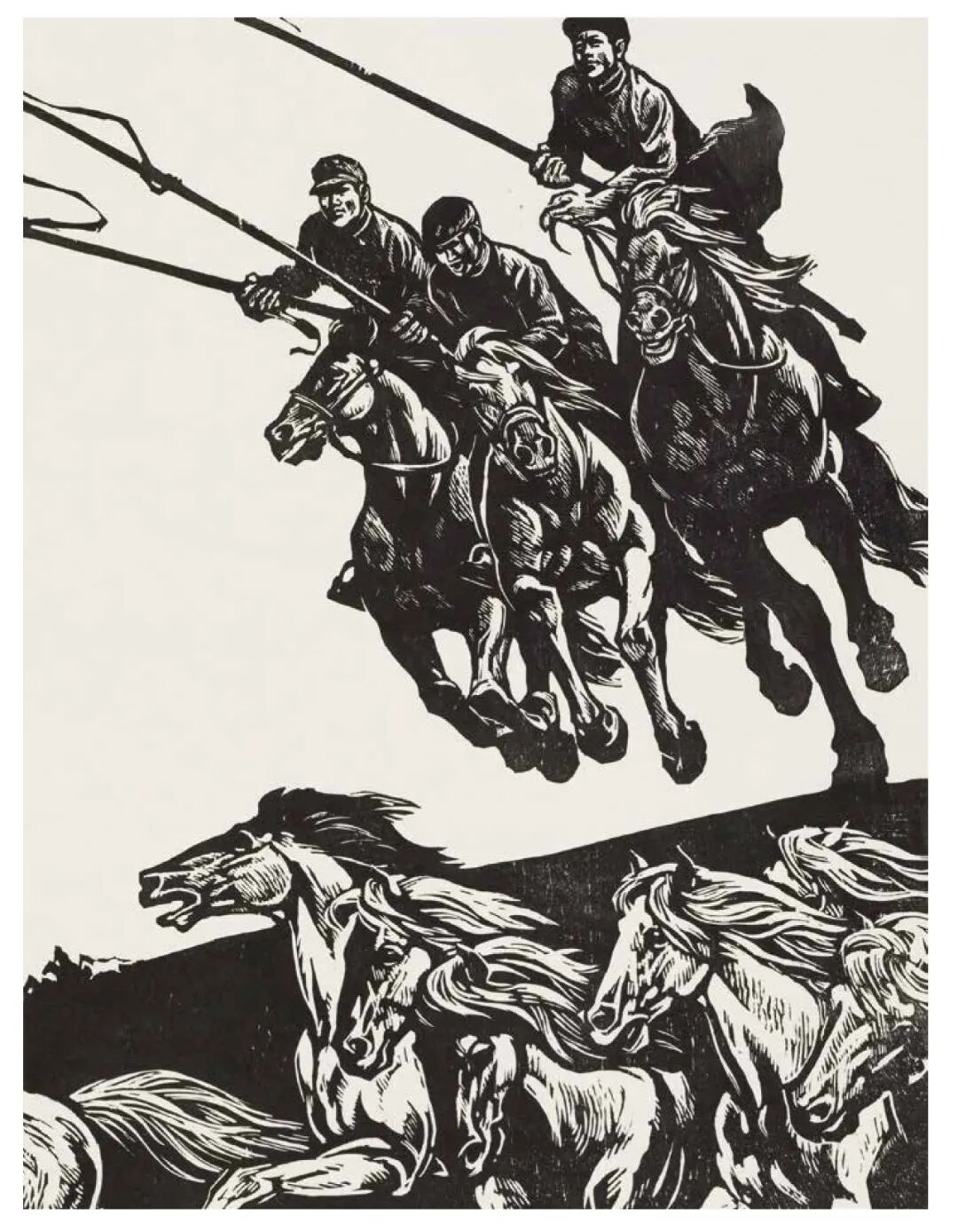 谭权书 骏马驰骋 木版单色 / 62cm×54cm / 1981