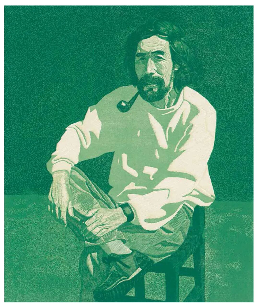 王华祥 绿色背景 木版套色 / 69cm×58cm / 1990