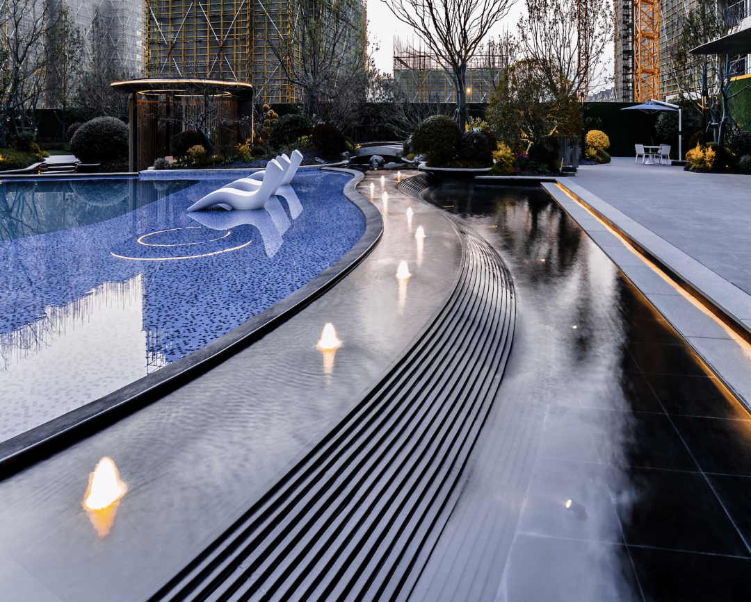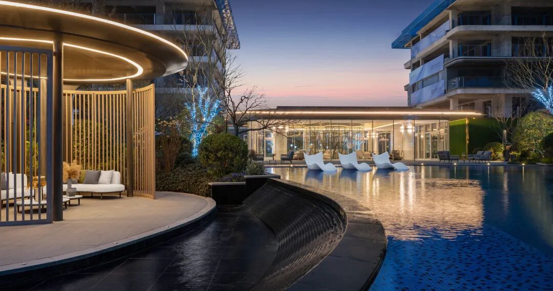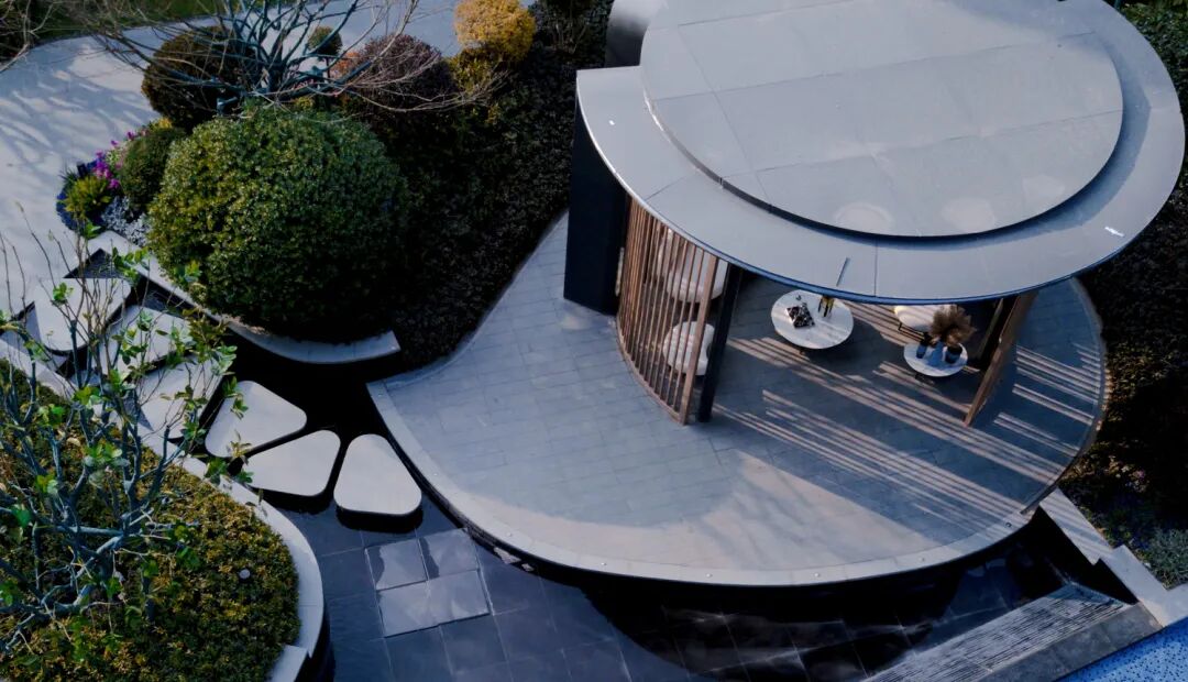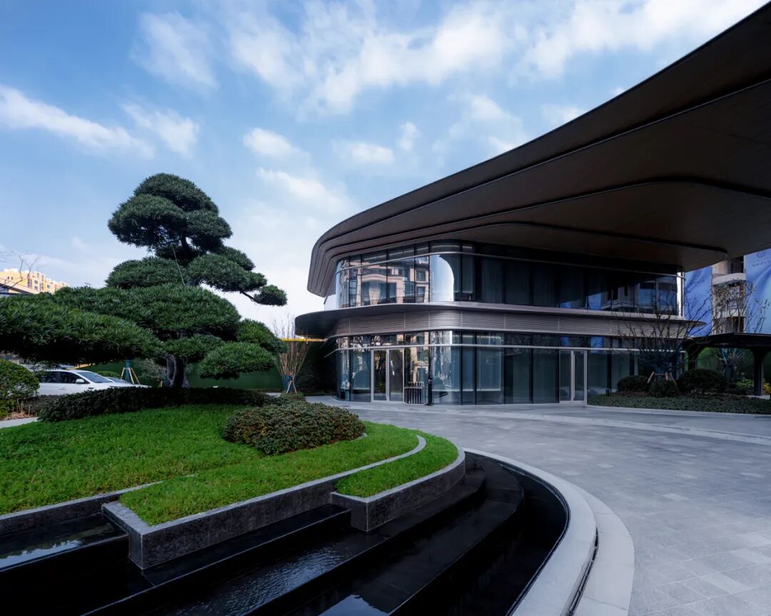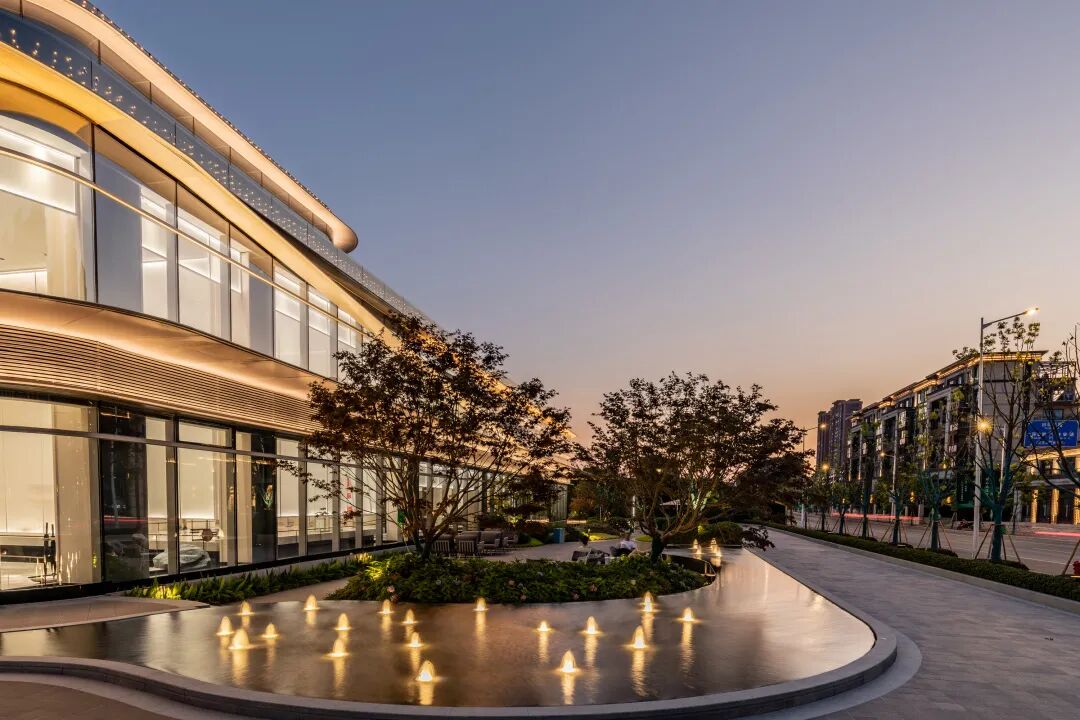 建筑线条摈弃传统的横平竖直,用丝绸般蜿蜒的流畅线条包裹,景观设计延续了这一设计理念。