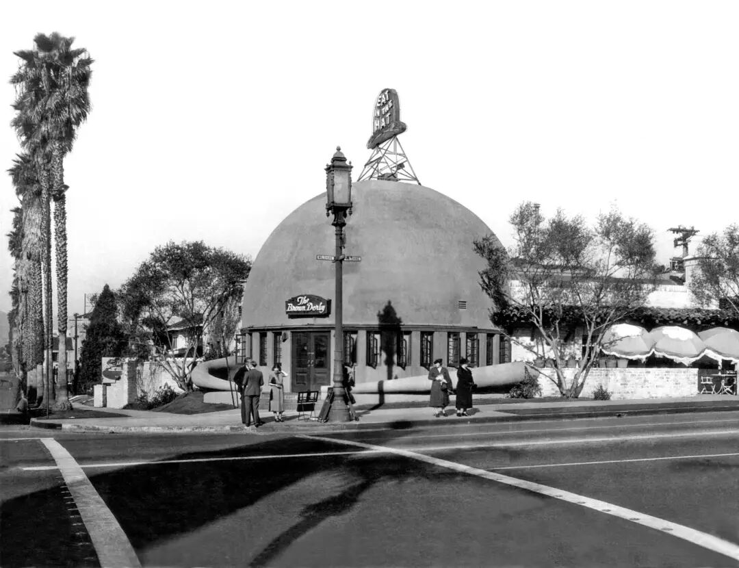 布朗德比餐厅1926年在威尔希尔大道开业,位于洛杉矶大使酒店的名人云集的椰子林街对面。餐厅是最早的象形建筑之一,造型取自德比帽,是好莱坞黄金时代的标志。