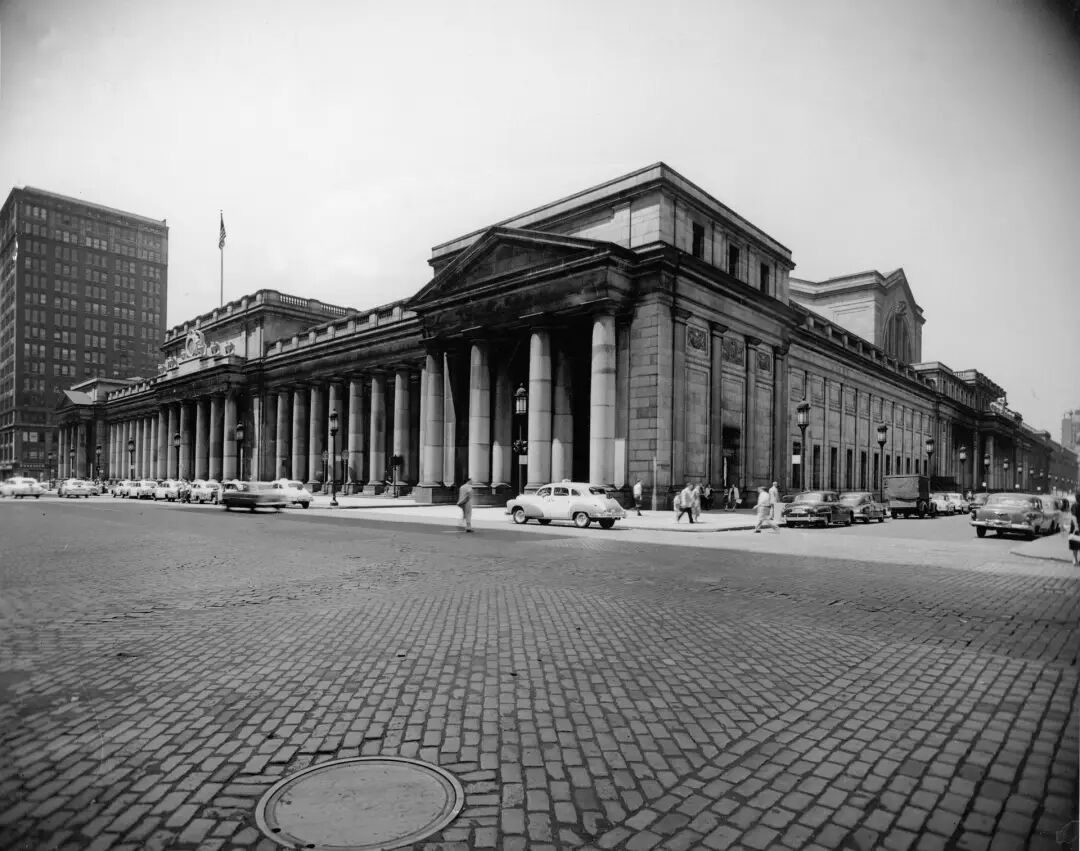 宾夕法尼亚车站曾代表着当时的总统亚历山大·卡萨特的梦想,建筑参考罗马浴场和君士坦丁堡的样式,由传奇公司McKim, Mead & White设计,建设于1906年6月开始,于1910年完工,其中车站巨大的主大厅以伦敦著名的水晶宫为蓝本,玻璃和铁制品的天花板让室内沐浴在阳光下,还使用了为项目特意进口的意大利石灰大理石,大科林斯柱高出房间18米以支撑高达45米的拱形天花板。
