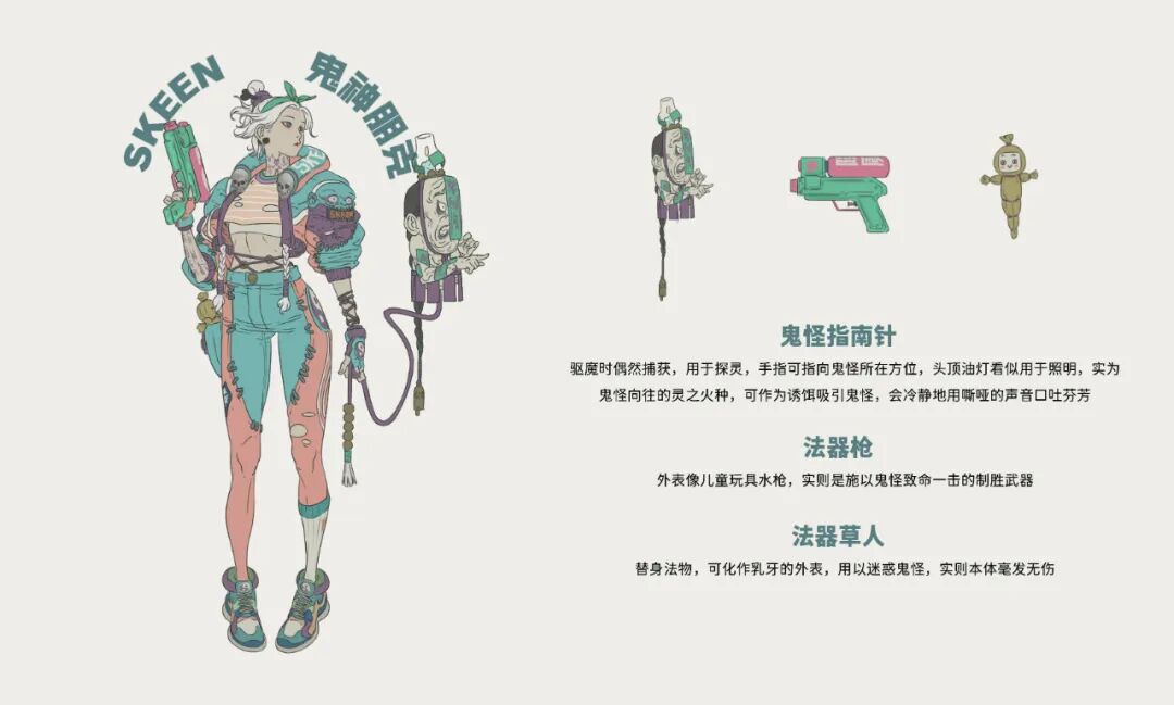 ZeenChin:这次合作的角色名字叫做乳牙,当时就是想起个有童真感觉的名字,角色设定是保有纯真的驱魔师,所以武器玩具枪,还带着一个用来做法的可爱人偶。服装的材质设定是鬼怪的皮肤,其实最初是想用人皮的(有机会再和大家分享为什么会想用人皮,因为这个故事有点长~)