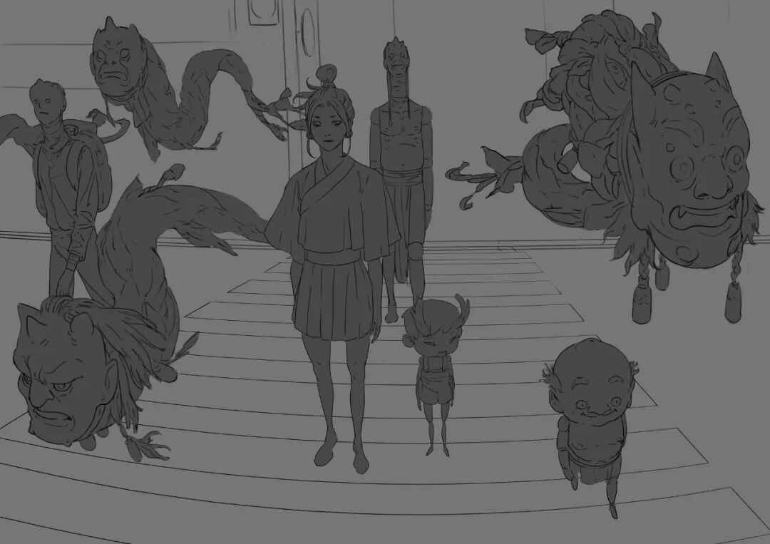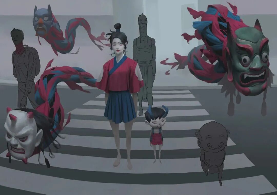 Q:为什么会喜欢东方神怪元素?又是如何把东方元素和赛博朋克融合的?