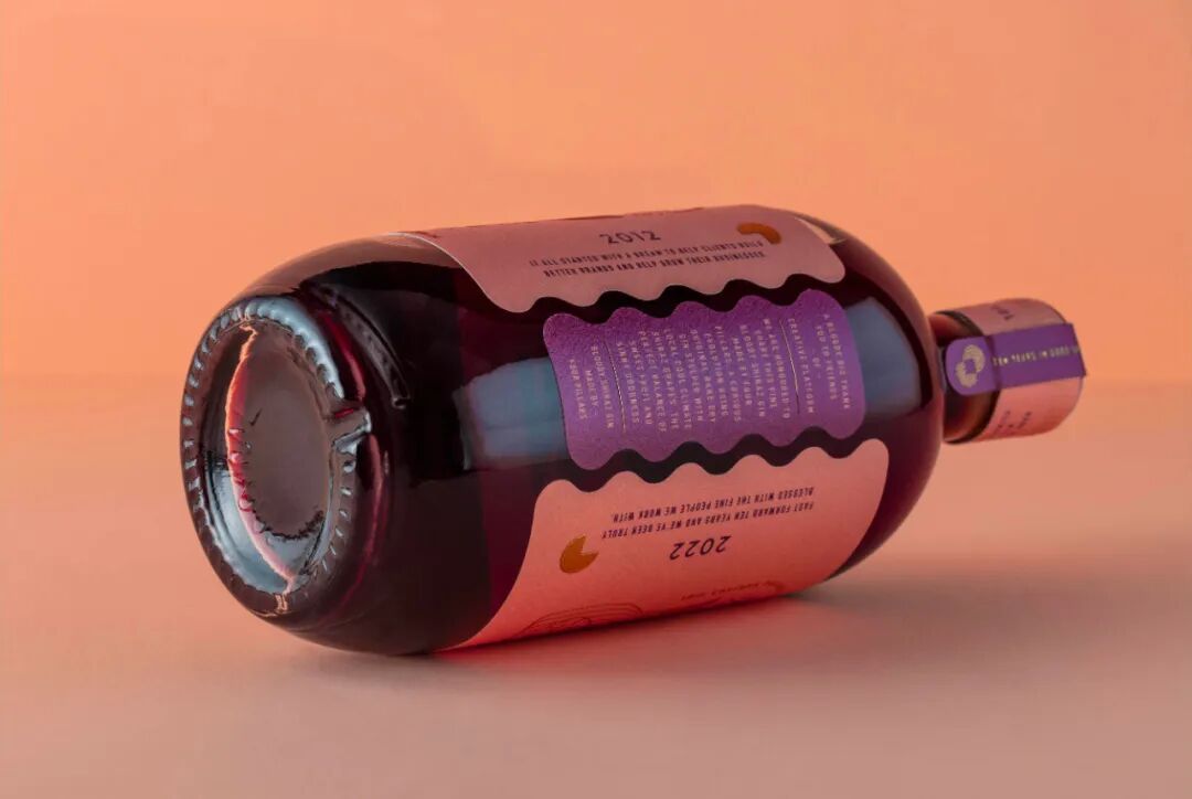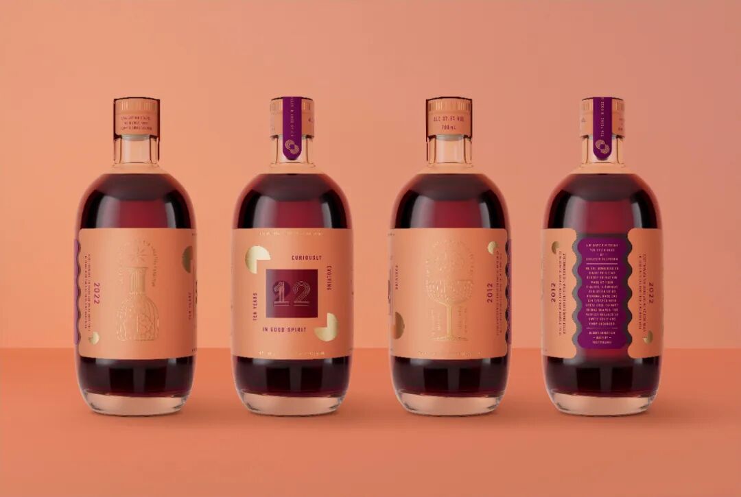 该产品是从2012年开始,到今年是2022年,最大的创意是瓶子的标签上有一个透明的印刷效果,上面有开始的日期12,叠加了一个22,在没有喝完的情况下显示的是12,而在喝过半之后,22就会显露出来。