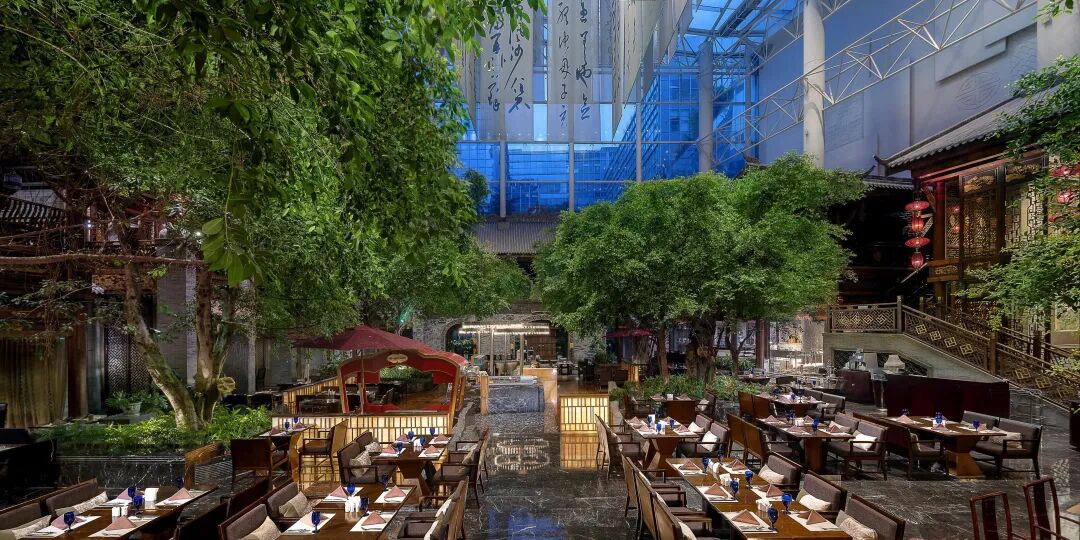 ▲ 在成都世纪城天堂洲际,则将悠然的传统庭院和古雅的传统木质楼阁迁入现代钢结构玻璃幕建筑的华盖之下。让经典建筑精髓和庭院的逍遥,为当代人在任何季节和天气条件下欣然品读和享用。
