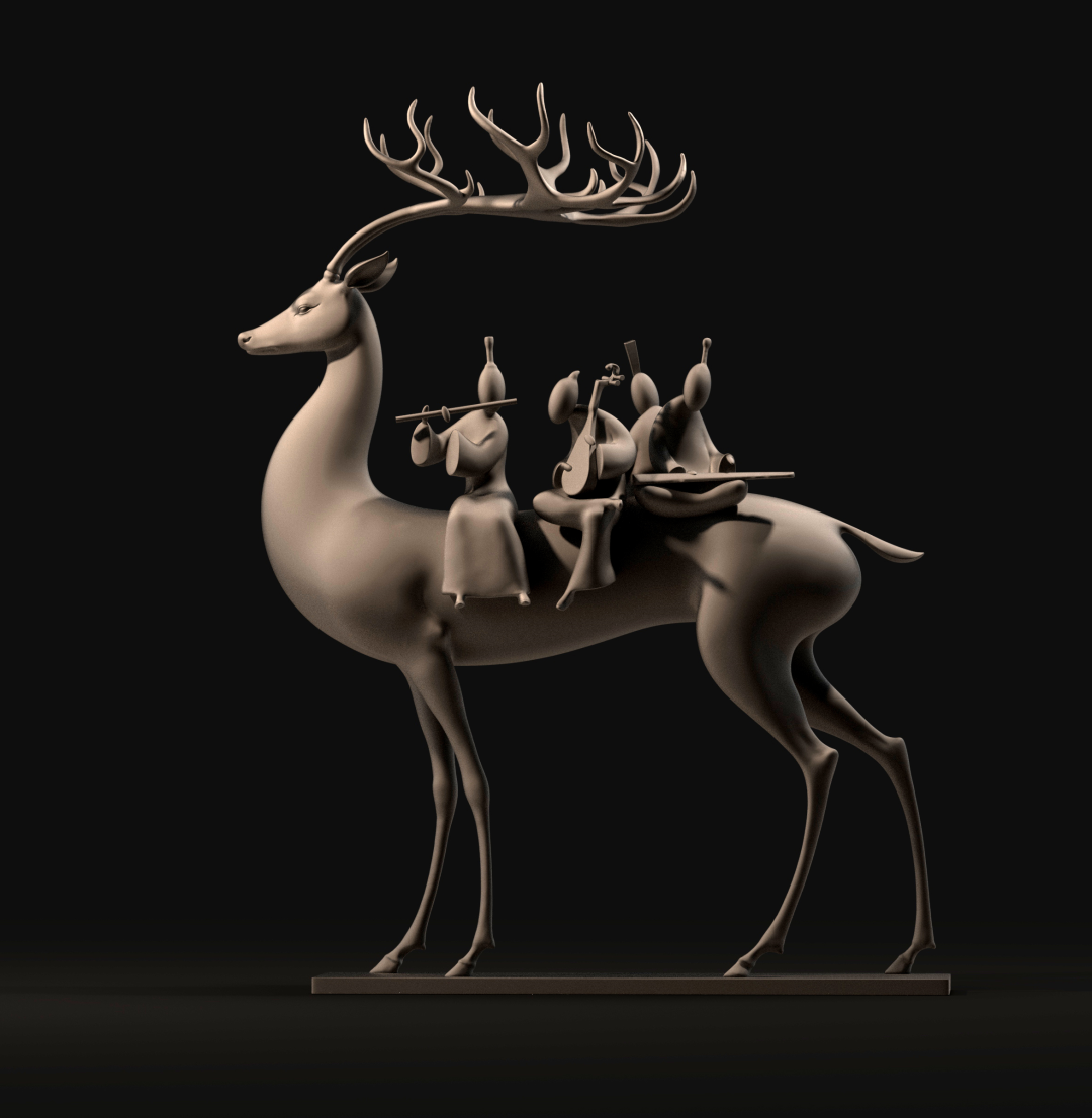 ▲周鉴鸿《呦呦鹿鸣-Ⅱ》Deer's Music 高80cm 数字作品 2019