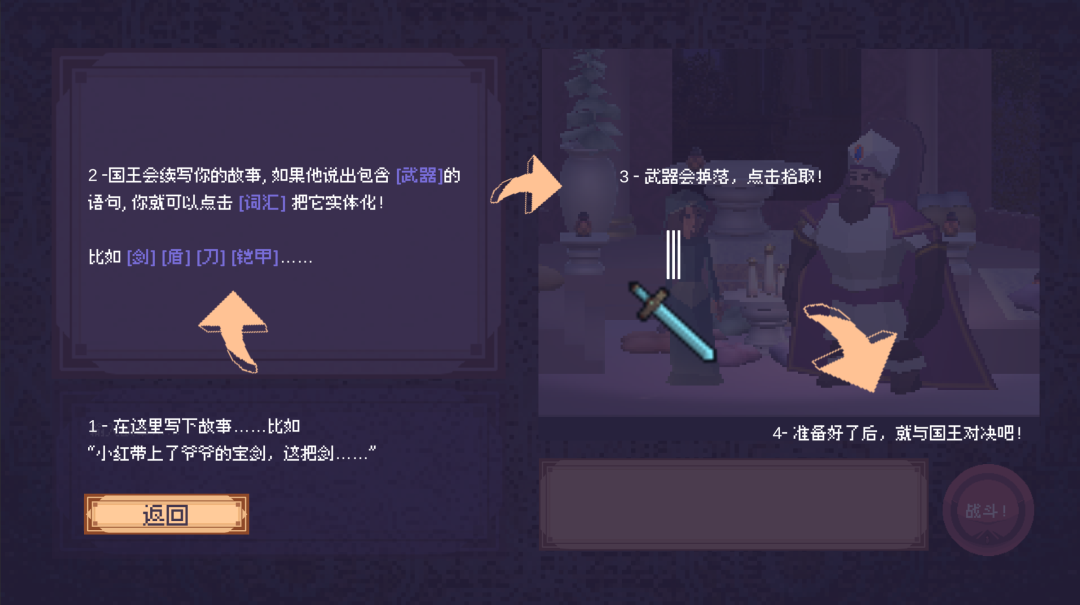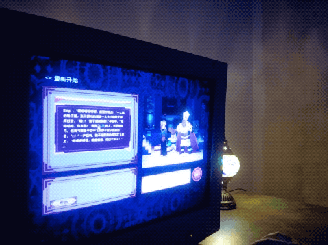 技术方面,最开始做的游戏是英文版,从古登堡短篇小说集里筛选了一些带有“剑”、“刀”或“盾”等相关字眼的故事,训练了一个模型出来。后来在国内进行展览时,文本模型换成了彩云小梦,彩云小梦是一个文本生成的工具,可以帮助人写作,你写一段前文,它就会续写下去。