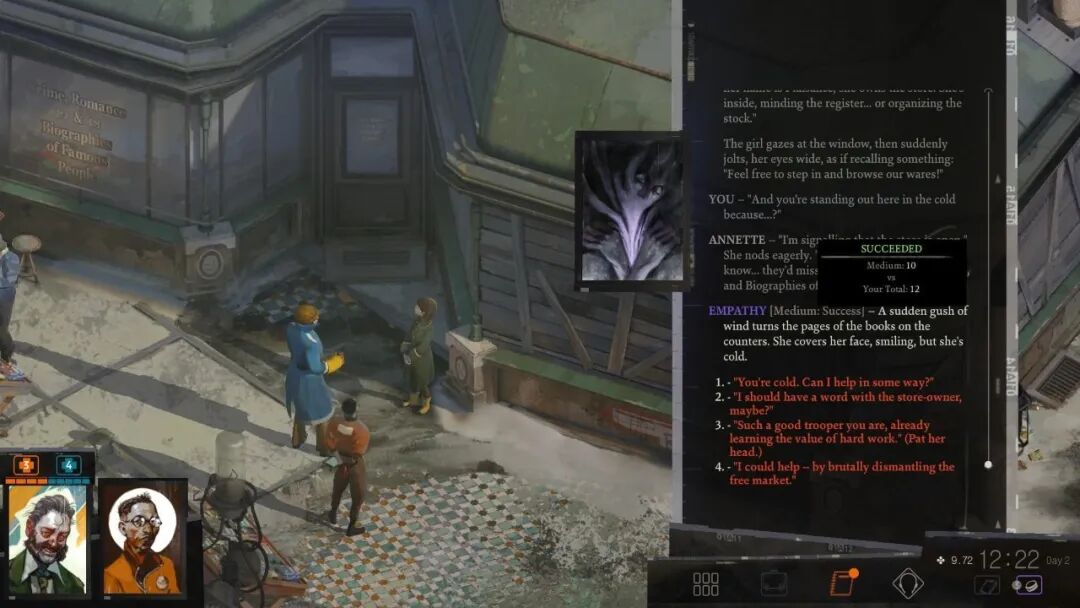 我最喜欢的游戏之一极乐迪斯科,它虽然没有很丰富的互动系统,但是因为文字量很大,细分支很多,可玩性和自由度都很高。