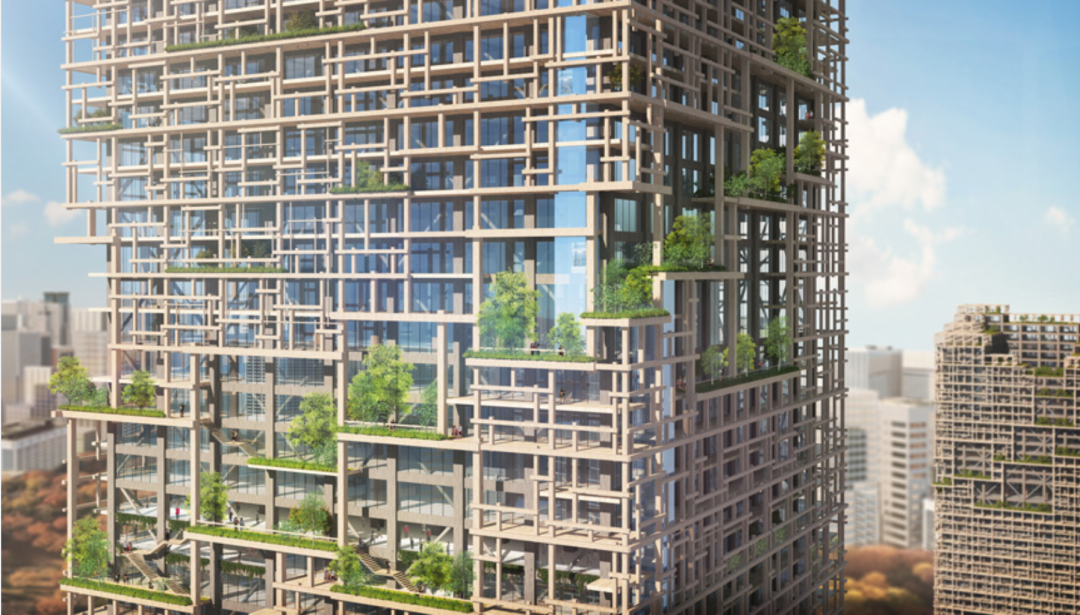 2010年,日本通过了《公共建筑木材使用促进法》,使得在建筑中使用木材成为鼓励创新的国家政策。考虑到木材在建筑建造和城市发展中的优势与特性,日本最大的公司之一住友林业将要建造日本最高(350米)的木结构建筑项目W350。