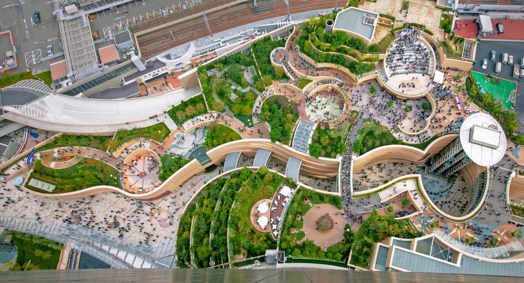 N.S :除了考虑到日本多地震因素外,设计时还需要考虑到日本多台风的影响因素。纯木结构无法完全满足在350米这种极高的高度下对抗震和抗风的需求。该建筑采用了钢木混合结构,建筑的外围由木钢混合材料制成的柱、梁以及钢支柱来支撑,以适应当地多地震多台风的自然环境,确保安全。