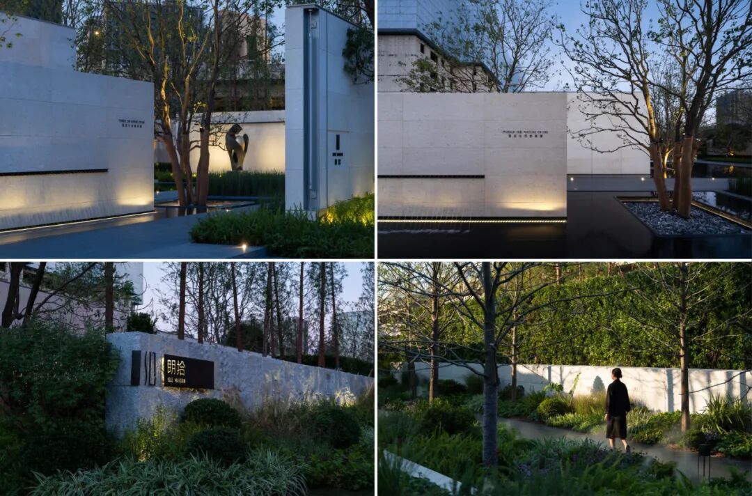 南京万科·朗拾项目,于环伺的都市繁华与自然生态中,以都市里的度假岛屿为立意探寻城市、自然与人的和谐对话,建构起静谧雅奢的度假酒店式社区。示范区衔接城市绿意,延伸社区自然界面,设计以超45m红线的主动退让,营造约3000m²私享自然园林。内部顺应大地起伏的三级台地园林,演绎“拾级而上、层林叠翠”的隐奢秘境,折射进阶人士的生活价值观。