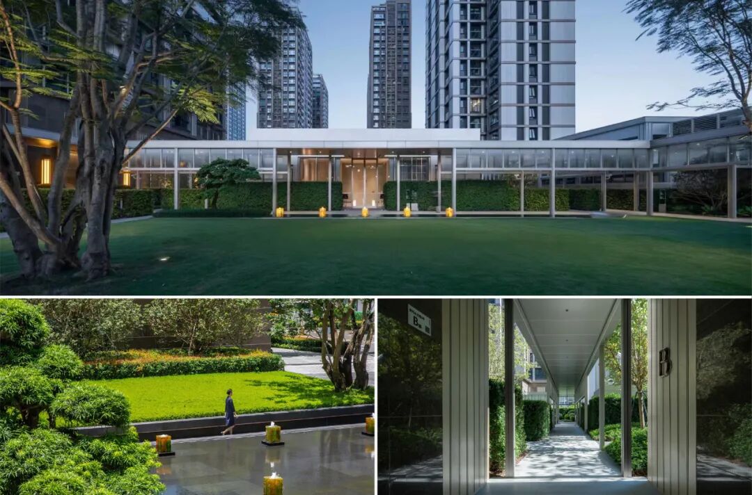 本项目在设计上一大特色就是因地制宜。项目位于东莞黄江镇,场地环境不是很好,可以说是“无可因借”,但我们创造了一个超脱出环境之外的空间,激活了沉闷的现状,又在隔绝外部环境的同时在内部营造一个更加放松的氛围,塑造了更加沉浸的景观体验。最终,项目靠着较高的品质,吸引到了不少深圳及湾区的客户。