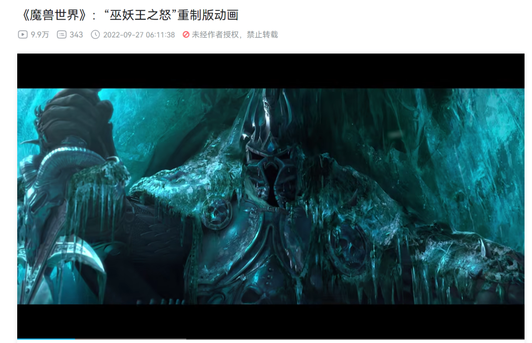 同时,官方也放出了巫妖王召唤冰霜巨龙那个经典CG的4K重制版。