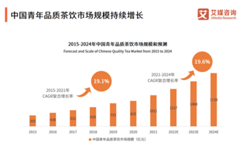 艾媒咨询统计显示,中国青年品质茶饮市场规模从2015-2021年持续增长,期间复合增长率为19.1%,2021年市场规模约1011亿元;预计2021-2024年复合增长率为19.6%。其中,18-40岁的群体在消费人群中占比达到85.5%。