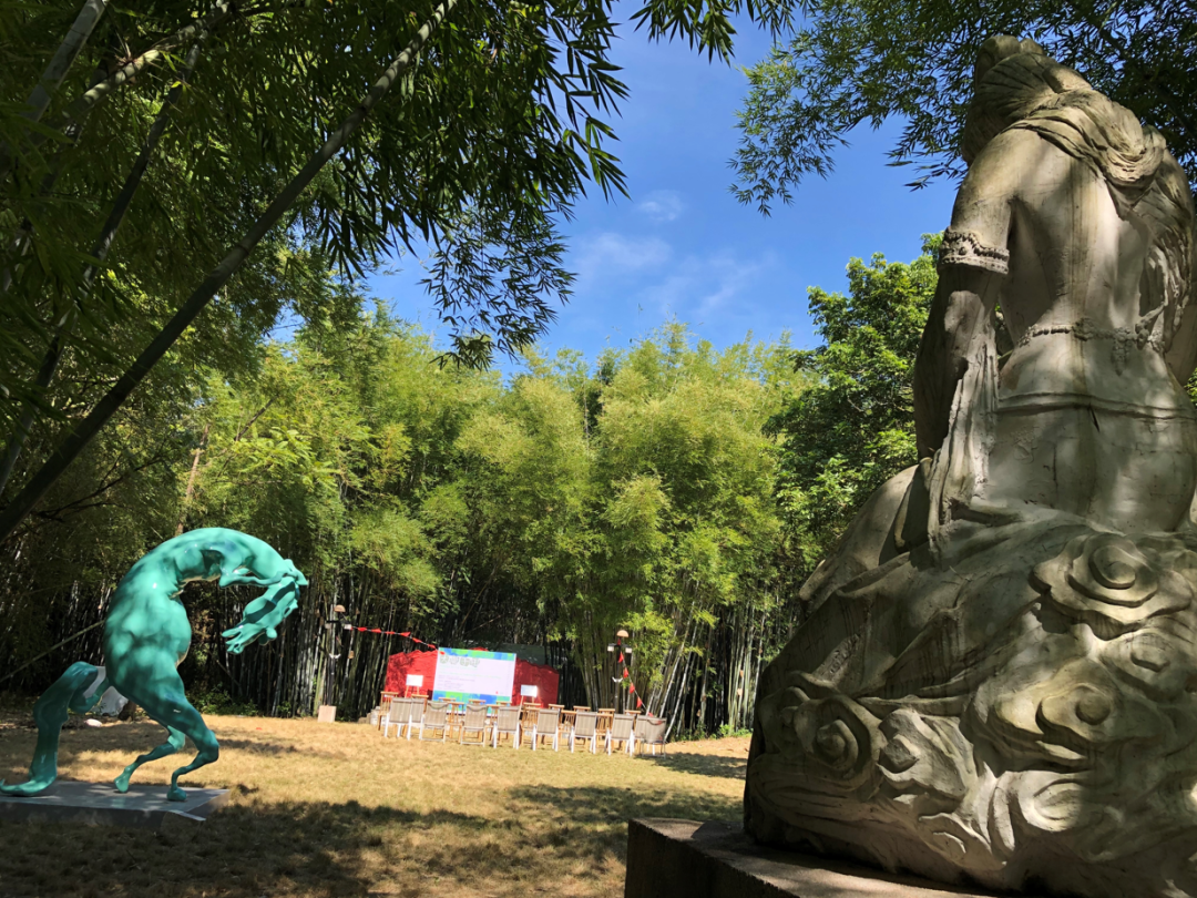 另一个园区是位于广东惠州著名景点罗浮山附近的“太田乡村艺术创作营暨乡村雕塑园”,该园区离我们广州潘鹤雕塑艺术园120公里,坐落在风景优美、三面环山的小平原上,占地约二十余亩的园地选择了一处茂密的竹林作为营地范围,在这里我搭建了十几座三角森林小屋,租用了部分村民的传统老宅,还建有小小的森林美术馆,配合舞台、活动小广场等,形成了一处颇具特色的艺术民宿区,同时尽量保留大面积的林木覆盖,点缀十几座固定位置的户外雕塑作品。雕塑园的主题围绕“人与自然”这个内容展开,希望在这个平静优美的山区创造一个近乎于禅意的空间,平和与宁静的艺术氛围,让世俗的人间远离争斗,这就是我所期望的另一种艺术状态追求。每年我都会在这里搞一些艺术展览或活动,其中在2020年策划了一场《大隐于田——太田乡村当代雕塑展》,我认为比较成功,利用我的园区和周边金黄的稻田作舞台,展示了来自多个国家的户外雕塑作品,雕塑与大自然融为一体,不仅丰富了村民的艺术生活,还小小的带动了一下当地的消费,这是一个成功的尝试,希望来年能够继续开展,争取做成双年展或三年展这样持续性的内容。这个园区完全是我个人的兴趣选择,可以让我按照自己思路来打造所以我并不着急要一气呵成,我像培植树木一样让她逐年生长,把它视为我公共艺术探索的一种实验性项目,期望慢慢成为像日本“月后妻有—大地艺术节”那样长于大自然中的“雕塑森林”。