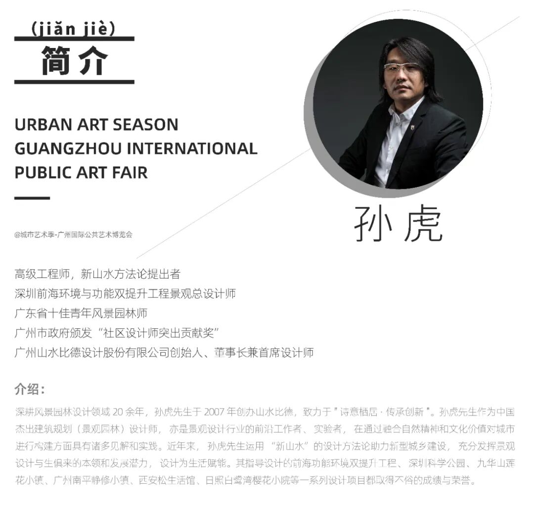 浙江美术报联合城市艺术季-广州国际公共艺术博览会,邀请广州山水比德设计股份有限公司创始人、董事长兼首席设计师孙虎,共同探讨大自然中的公共艺术这一话题,并请他给大家推荐一些他们心目中值得去打卡的城市公共艺术空间。