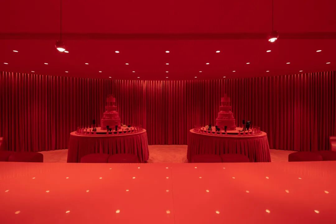 这是出自国内高端香水品牌闻献DOCUMENTS的限时快闪主题店,从本土传统文化的婚礼喜宴里提取灵感与意象,搭建出「囍堂」主题场景。