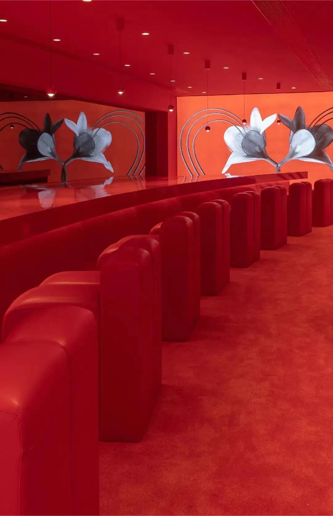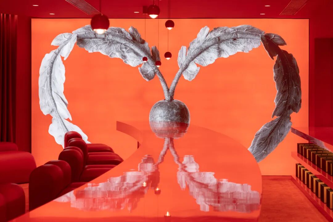 🔴 闻献DOCUMENTS配合「囍堂」主题,空间呈现了许多细节,诸如以独具风情与创意趣味的产品展陈,营造如同喜宴般情绪丰盈、富仪式感的购物体验,使所到之客皆可获取感官与精神的极致满足。作为整体概念的视觉补充,闻献以并蒂花与连理枝为创作灵感,构建出想象中的植物样貌,揭示“双喜”空间主题。由繁盛充满生命力的爱意,滋生着囍之生长。
