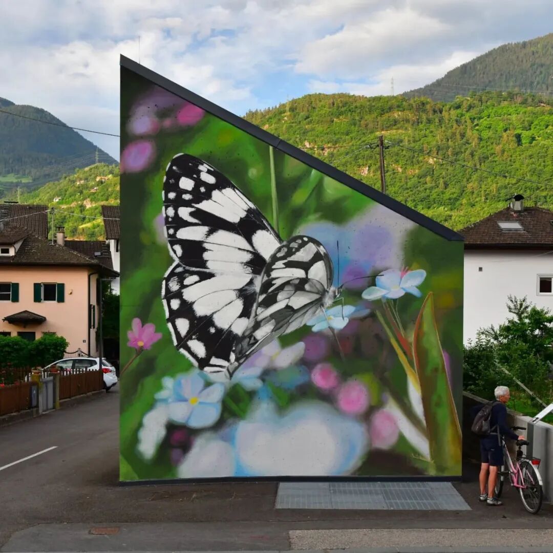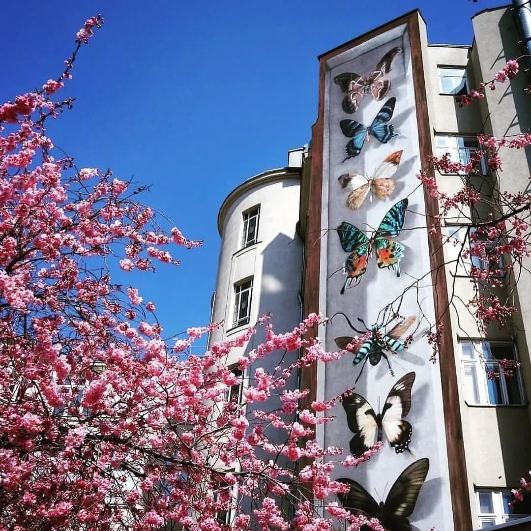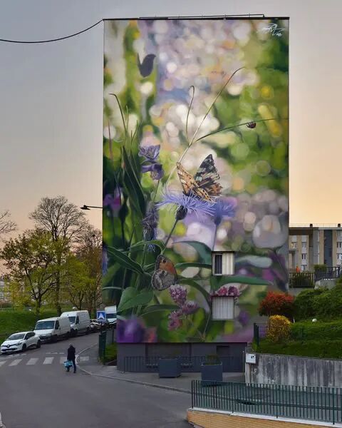 说了这么半天蝴蝶,小绛接下来是想介绍给大家一位酷爱画蝶的街头艺术家,这位来自法国的街头艺术家曼特拉,将整座城市都变成了一个大型花丛,无数的蝴蝶在其中翩翩起舞,仿佛整个世界都变成了蝴蝶的天堂,简直不要太浪漫,难以置信的逼真景象,给每一个路人都留下了深刻的印象。