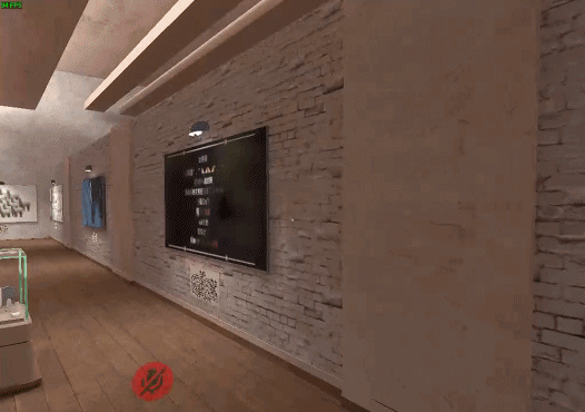 整个博物馆被分成了七个展区,游客顺着设计好的路线参观就能完整游历整座博物馆。这座虚拟博物馆和现实中的博物馆并没有什么区别。它在大厅放置了玩家位置指示器,虽然没有现实中的讲解员,但每一个展品都有一块讲解牌,有的还有语音和视频,可以让游客还原梗发生的情景。