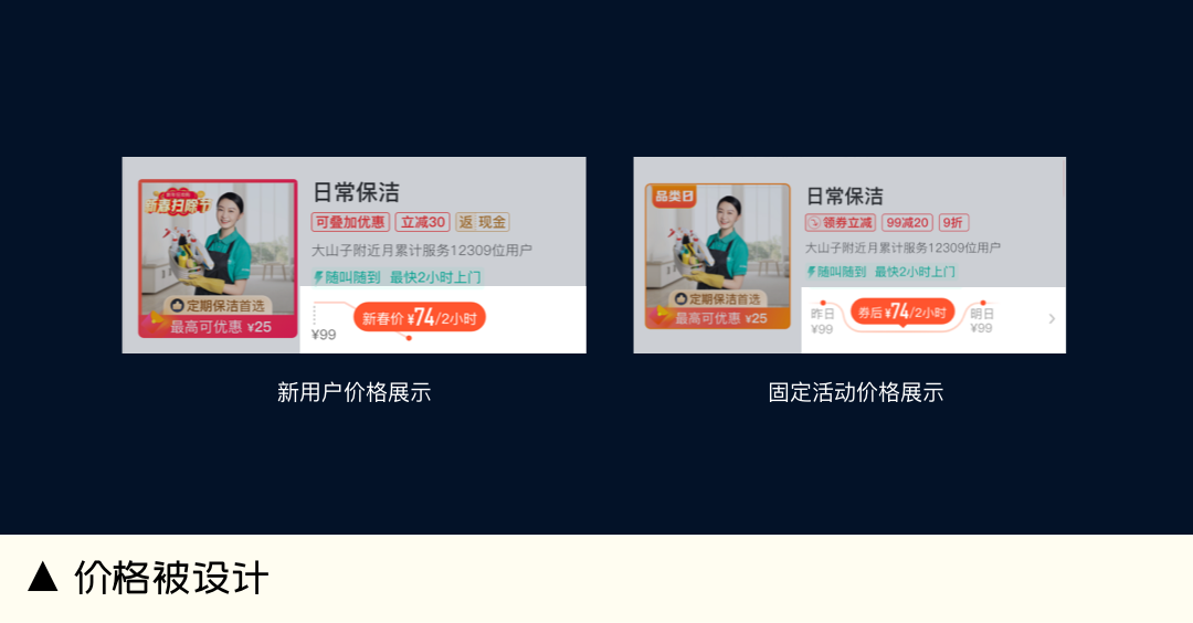以到家精选为例:结合用研报告,通过热力图可以看到用户在行为路径中的价格模块停留较久,说明用户在这个模块遇到了阻力,用户在拆价格,算性价比。所以我们运用“求廉”动机的设计方法帮助用户消除对于价格的阻力。