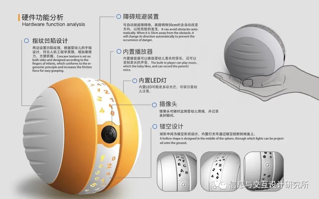 可持续设计理念:可持续设计原则,当孩子完成学步训练时,学步球可以转化成小音箱或者小夜灯,陪伴孩子成才,做到产品的最大化利用。秉承可持续设计的理念,提升产品的社会价值。