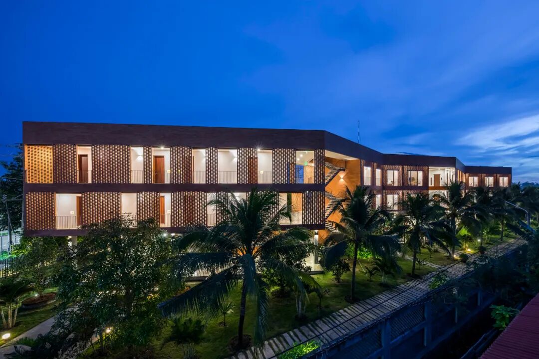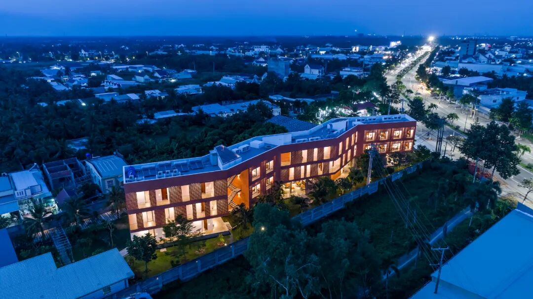 这种湄公河三角洲的独特材料以及与绿色植物的对比,使这家酒店的外观具有其他酒店的特点。我们的建议是使这个酒店 "滑入Ben Tre的大自然"。游客在这个酒店将能够通过建筑的特色循环体验各种场景。我们设计了一个酒店,在这里,只需走动一下,就能感受到Ben Tre的自然风光,而且美丽的光线会随着时间的推移而变化。
