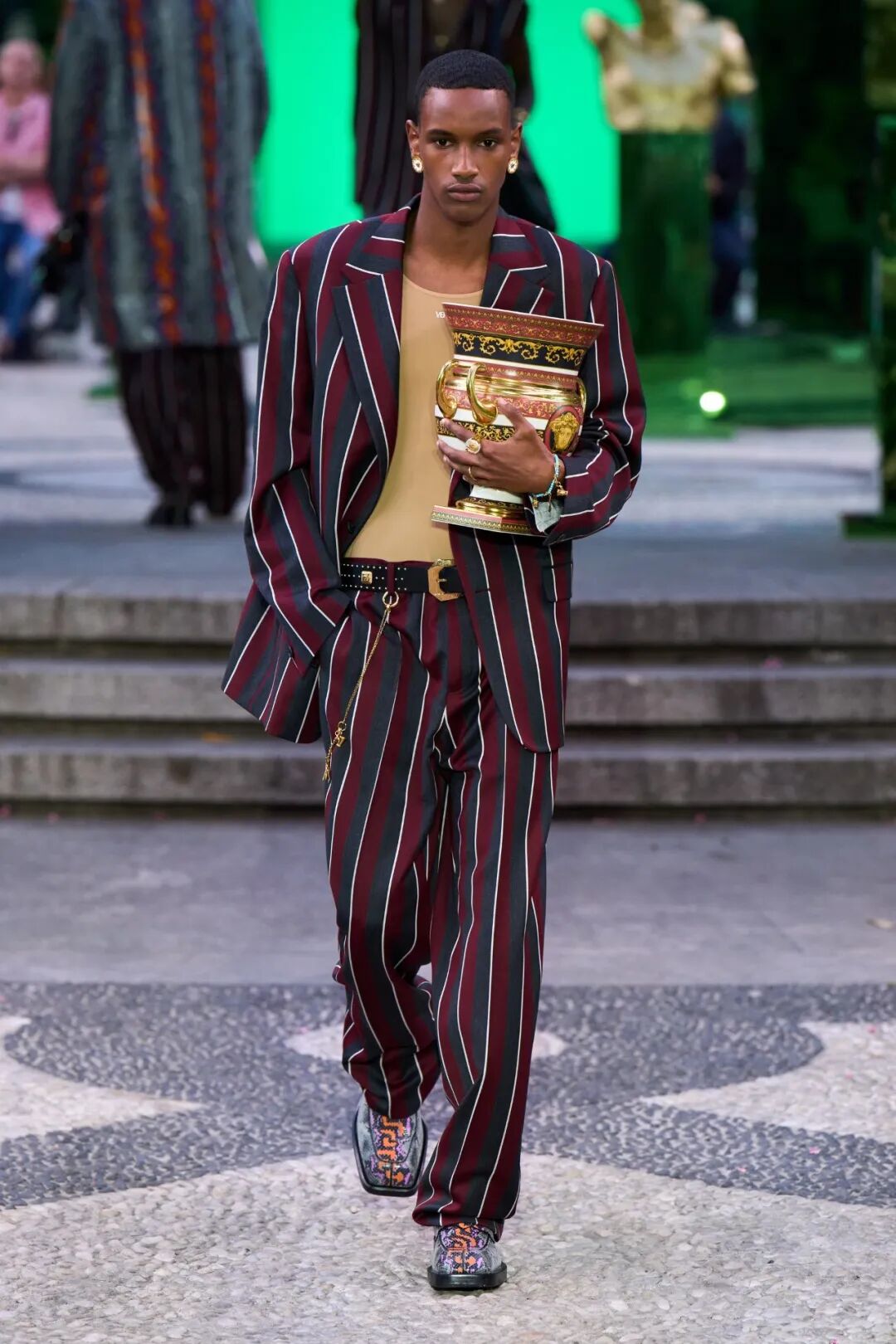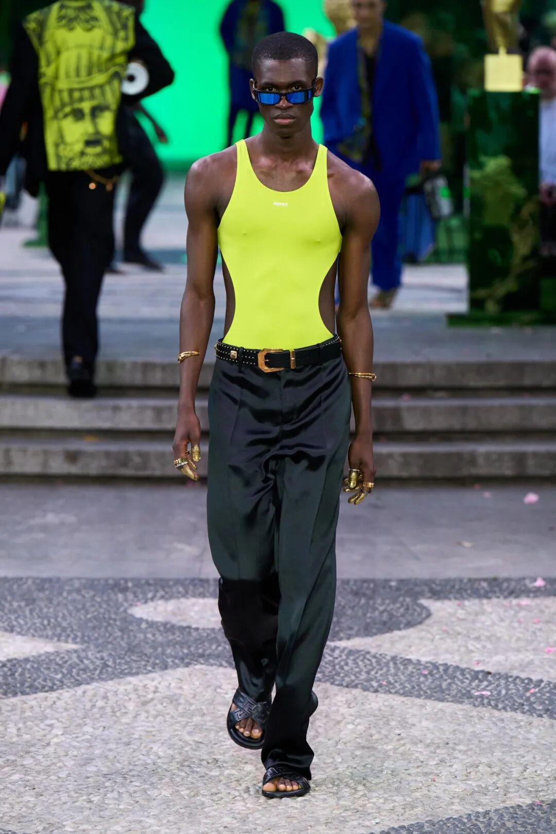 Versace的2023春夏男装系列将大秀选在了位于米兰Via Gesù街上的大宅中举行。