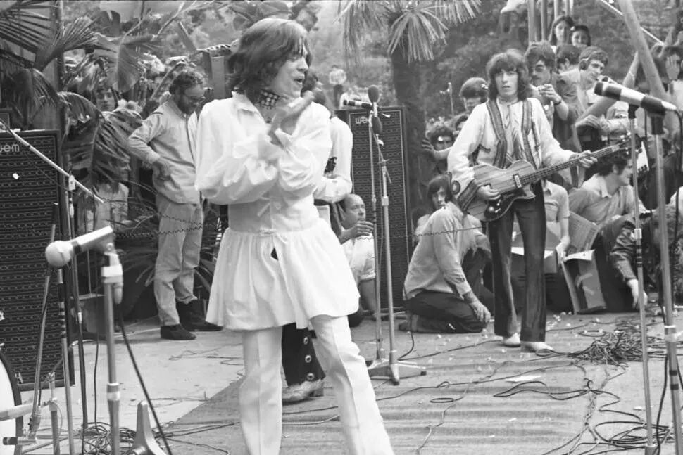 设计出丰富多彩的「鲱鱼领带」的Michael Fish,还为摇滚巨星Mick Jagger打造了经典华丽的舞台服,在海德公园穿白色宫廷风洋装演出的那一幕已是经典。