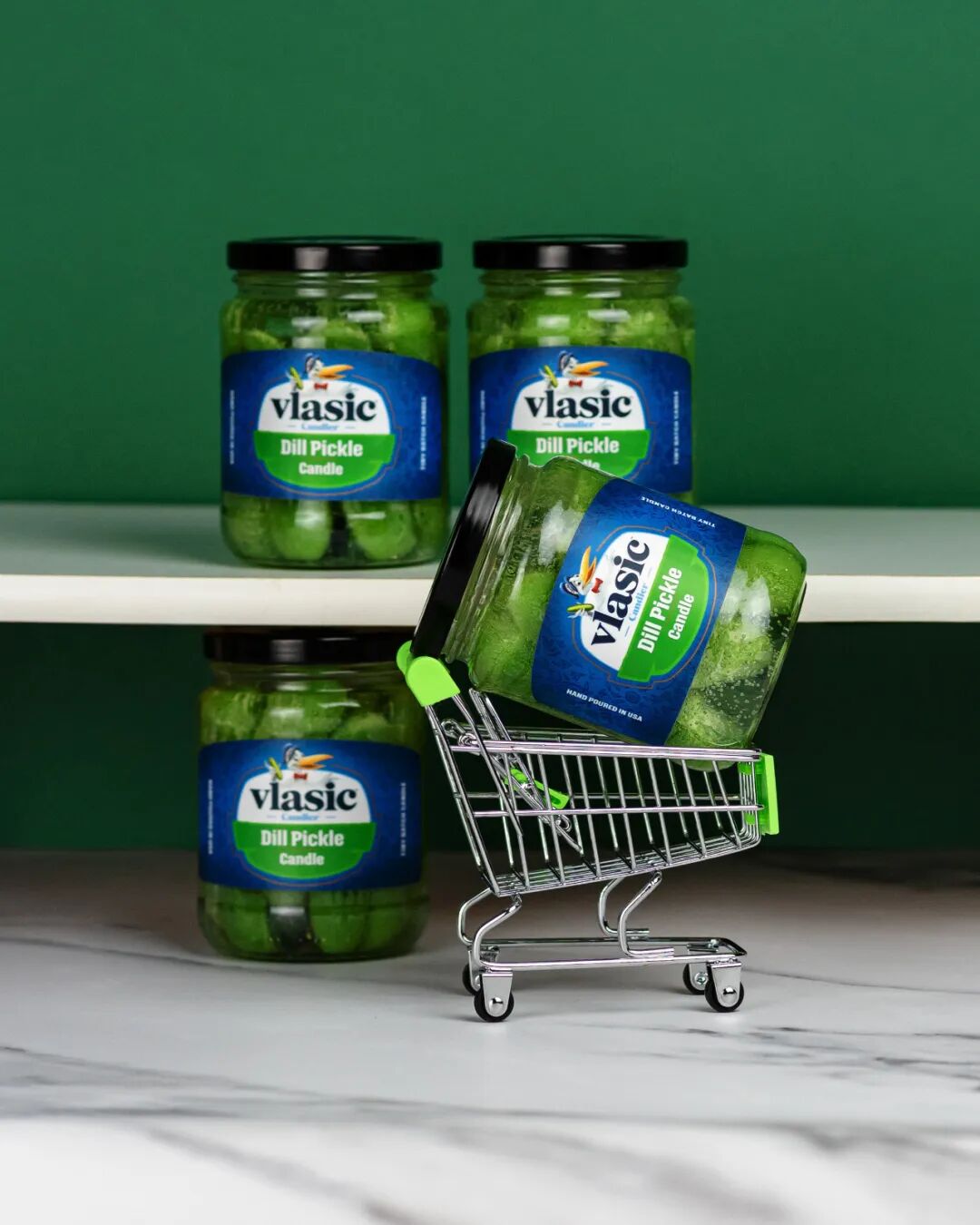 “我们看到了一个巨大的机会,可以用 Vlasic 做一些非常有趣和不同的事情来庆祝国家泡菜日。但是,制作看起来和闻起来都像一罐泡菜的蜡烛带来了几个巨大的挑战,”Ryan Porter 的 Candier 创始人 Krysten Kauder 在新闻稿中说。“让蜡泡菜看起来像漂浮在清澈的液体中是非常困难的。所以,一切都必须手工完成,包括泡菜的放置和蜡的浇注。经过多轮研究和测试,我们的团队成功了,并生产出了 100% 的蜡蜡烛,它的外观和气味都像一罐 Vlasic 泡菜。”