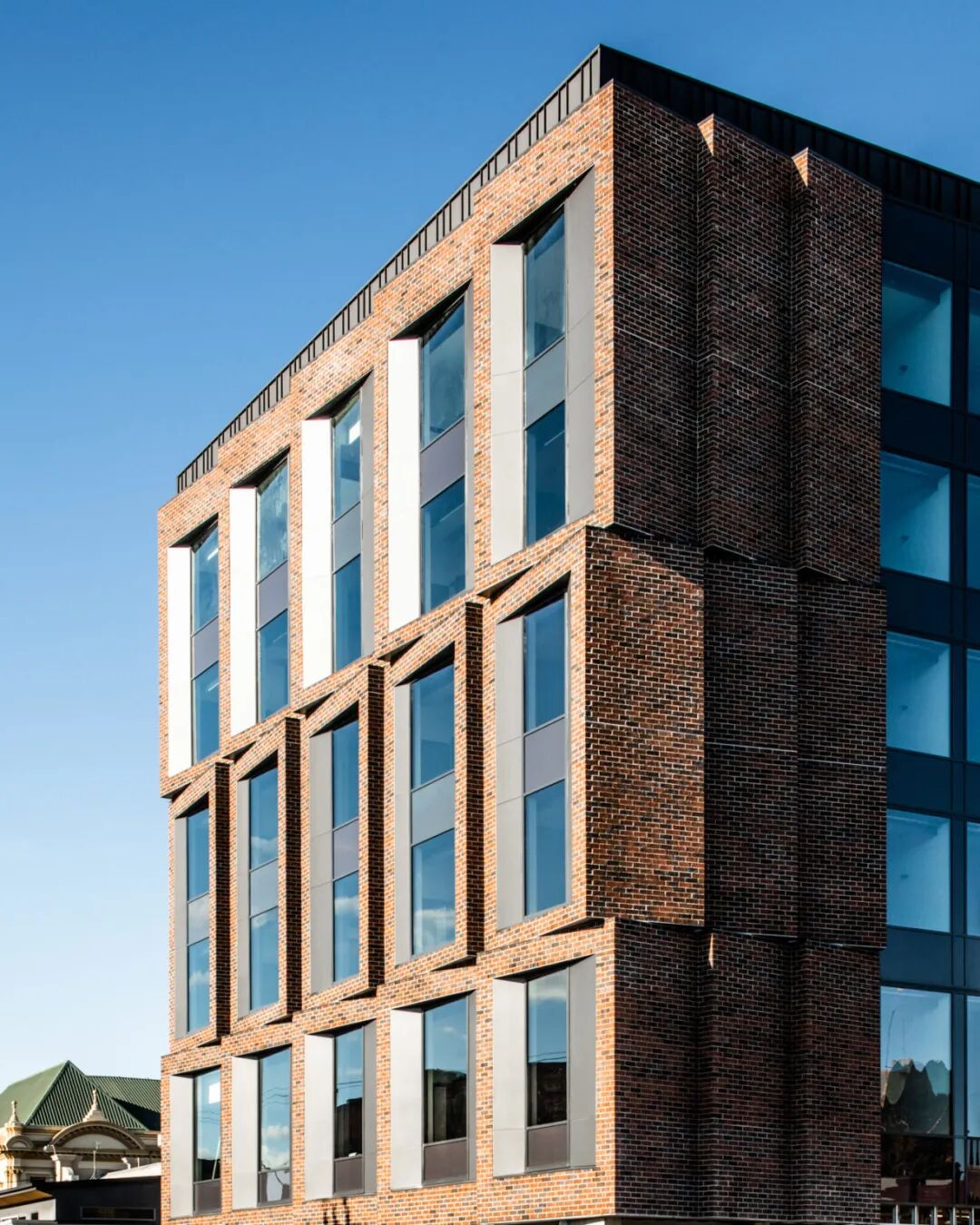 这家位于朗塞斯顿的新酒店在创新建筑和社区同化之间找到了适当的平衡,一方面,酒店使用当地采购的砖块,即来自澳大利亚唯一一家经过认证的碳中和砖厂作为地区工业遗产的认可。同时,结构略微交错的立面创造了独特的阴影带,这些阴影带在一天中根据太阳的位置而变化。因此,酒店以自己的现代风格改造了具有数百年历史的当地建筑语言。
