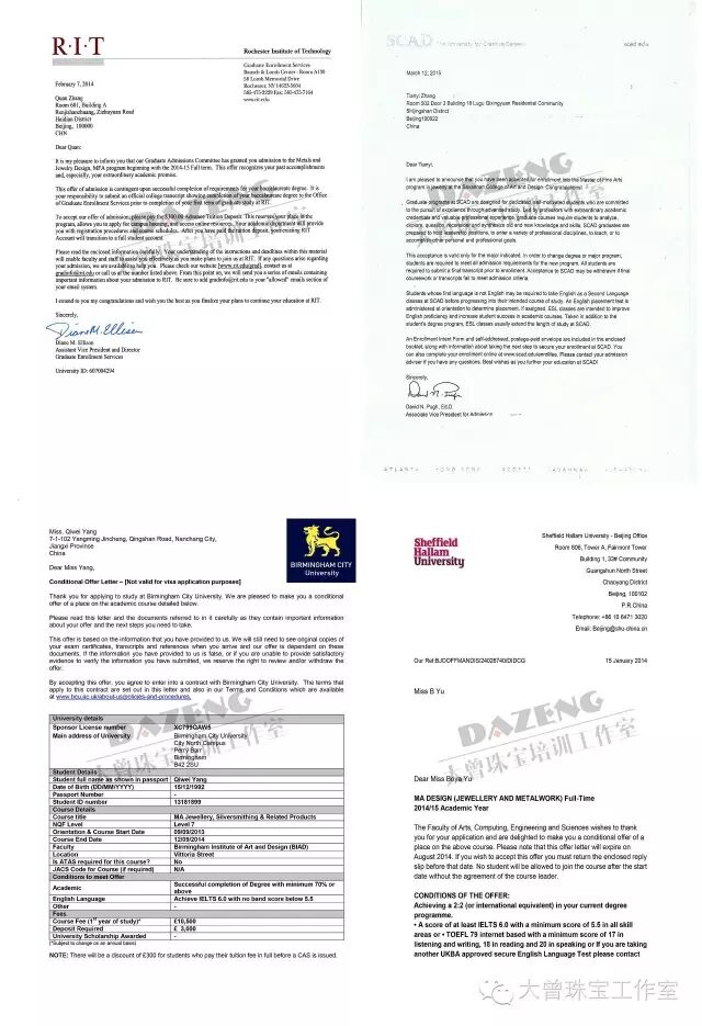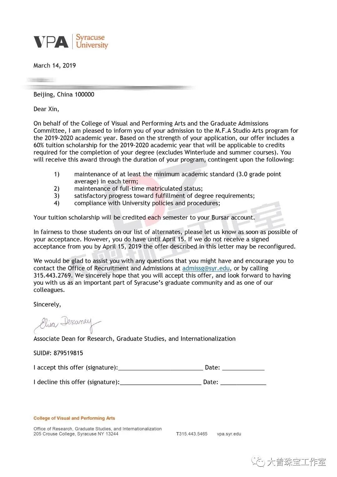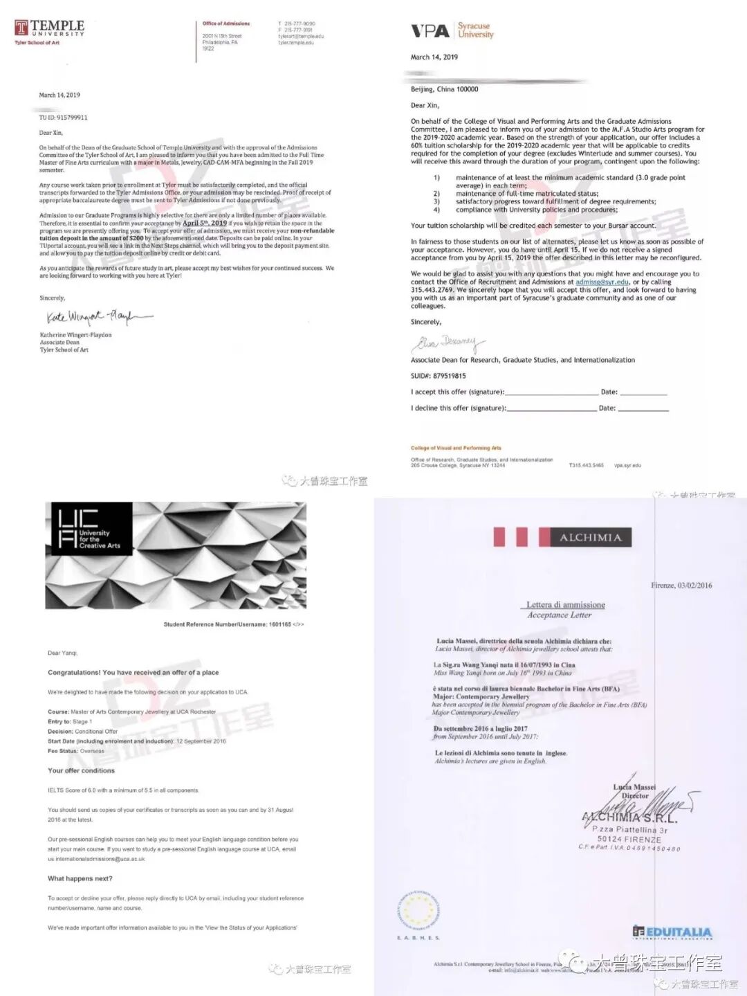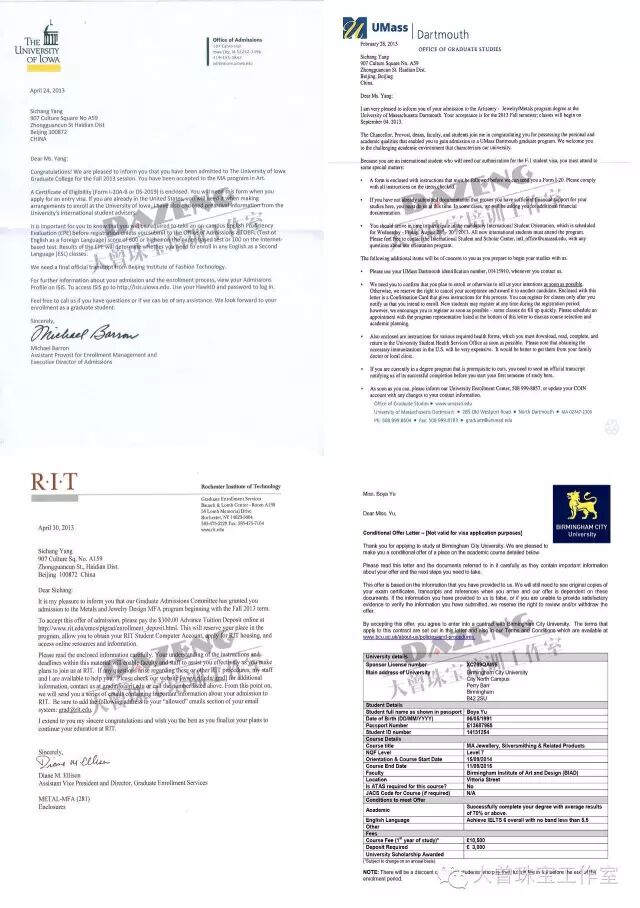 Offer:罗切斯特理工大学/天普大学/雪城大学