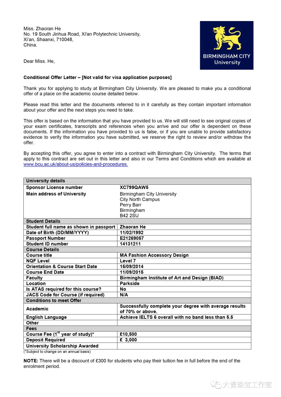 Offer:伦敦艺术大学 /伯明翰城市大学