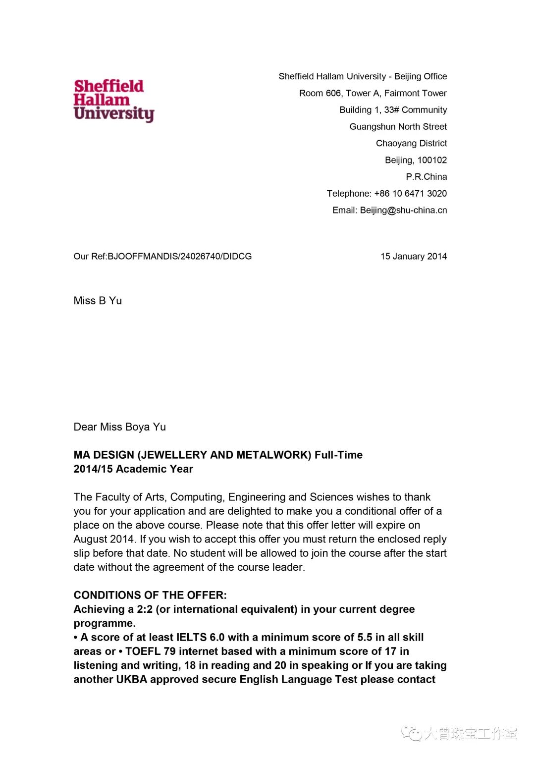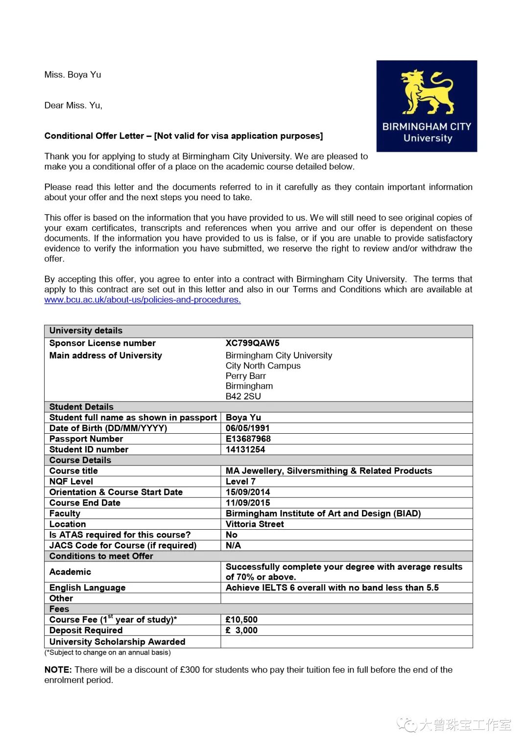 Offer:伯明翰城市大学/谢菲尔德哈勒姆大学