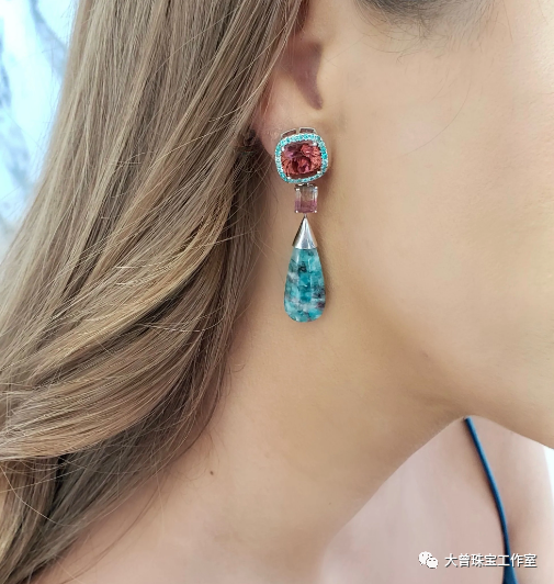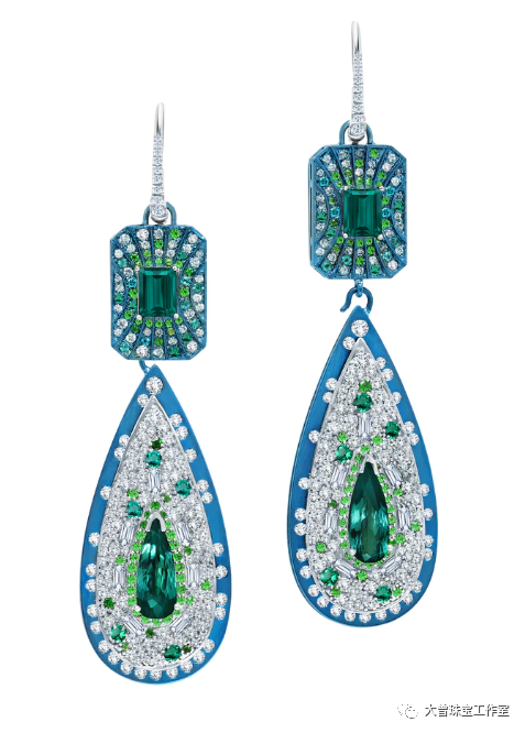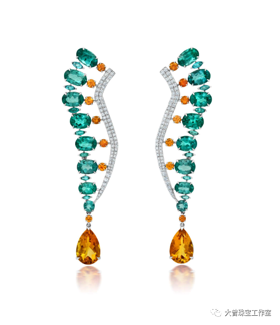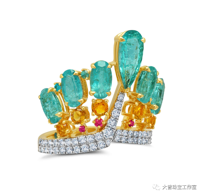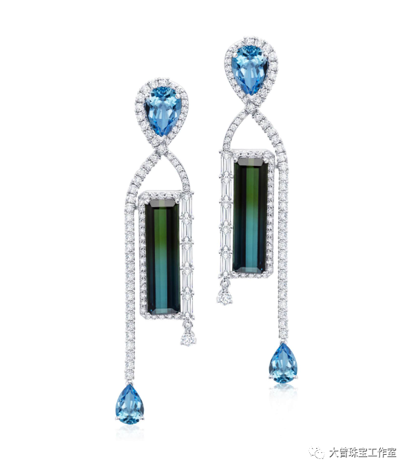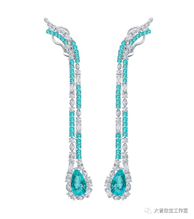 Paraiba 碧玺是世界上最稀有的宝石之一,因为首次在巴西东北部的 Paraiba 州发现而得名,那里的沙子是金色的,大海与天空交相辉映,呈现出令人叹为观止的绿松石色调。设计师运用 Paraiba 碧玺结合钻石打造成这一系列珠宝。
