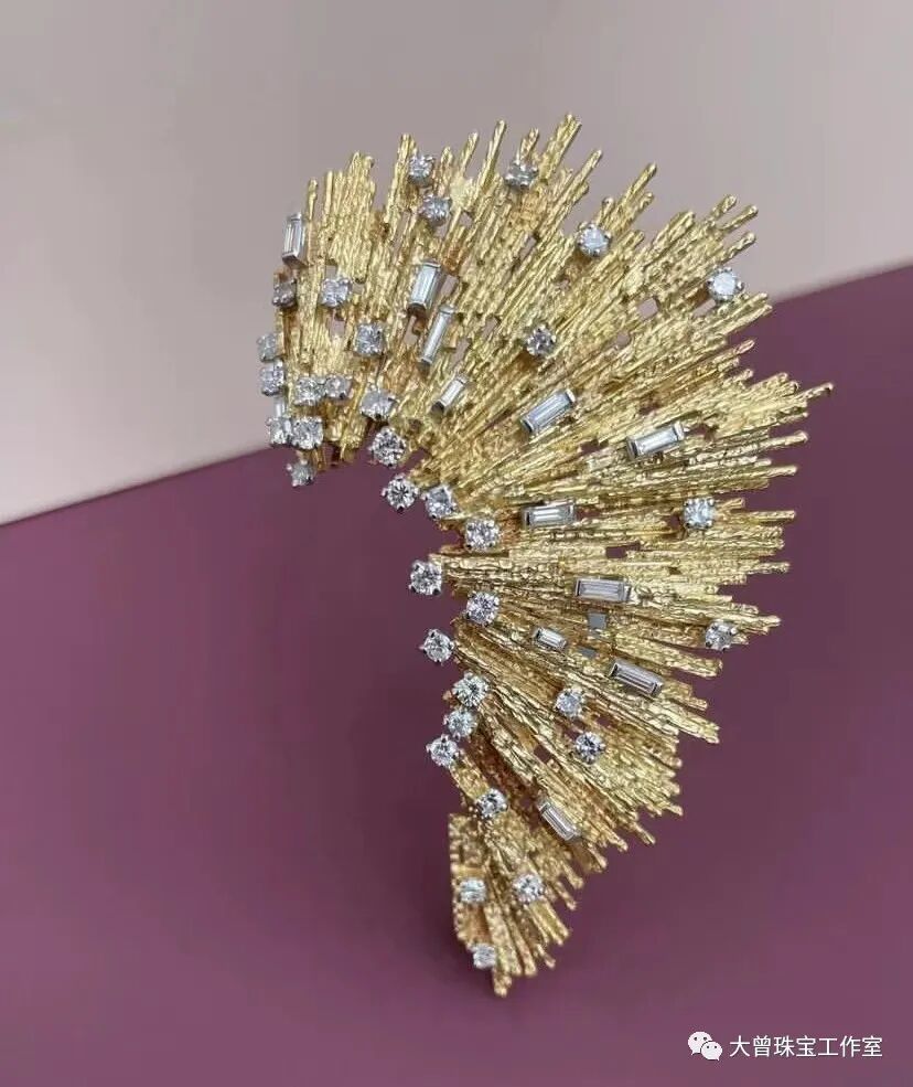 Grima的珠宝也涉及了多个系列,戒指、胸针、耳环、项链。每一件都可堪称为艺术品。