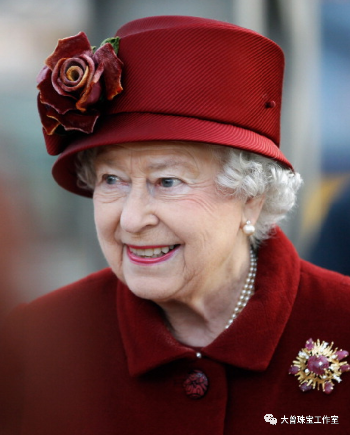 英国女王伊丽莎白二世在首次公开活动中佩戴她的格里马胸针