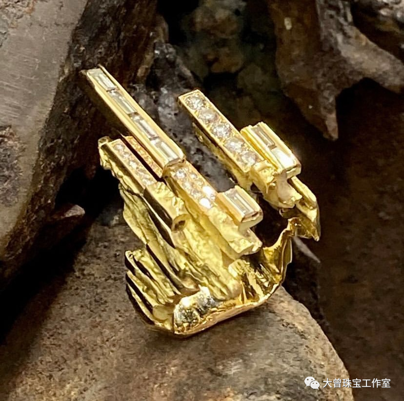 作为一个贪得无厌的创造者,他的每一件作品都显示出发明新形式的无限力量,这些新形式从充满活力的新材料的核心中汲取能量,这些材料从未在珠宝中使用过,如铁锈,这已成为他的标志性材料之一。
