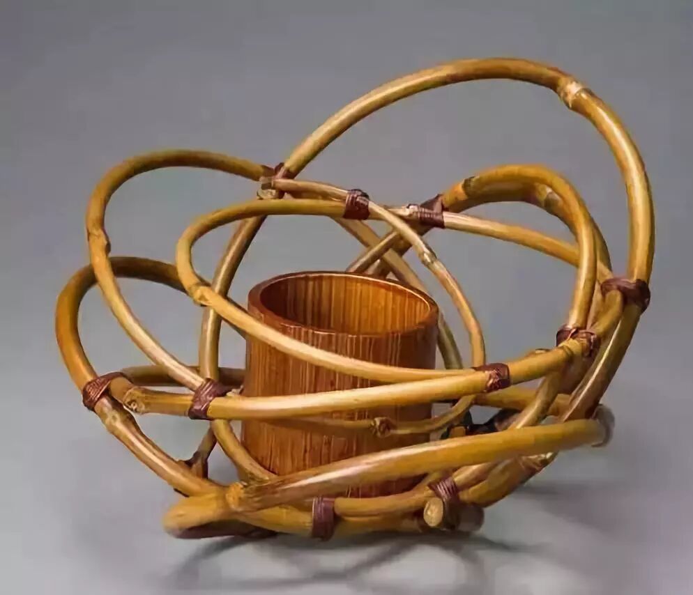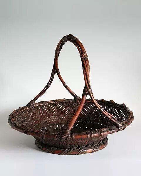如盛放花果的竹篮、日本茶道文化中的茶筅、茶勺、放置木炭的竹篓以及摆放茶器的竹架等,均对日本竹编艺术产生巨大影响。汉风盛行的大阪、关东等地区,竹器应文人的审美而造被称为“文人竹篮”,他们从复制唐物竹笼,逐渐发展出线条、颜色、形态和质感和谐统一的日式竹篮,将竹篮从功能性的手工艺品发展为受人追捧的艺术品。