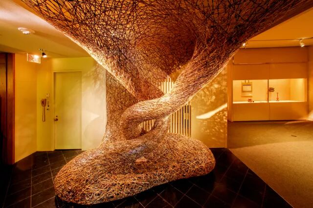 竹艺品不仅需要手工艺人精湛的技艺,更需做到耐心细致。在如今快节奏的现代生活里,日本禅学思想强调涤清心境对自然万物的敬畏,竹艺大师在编织时,或许已经化身成竹,手法的跳跃即是与竹精神律动的统一。