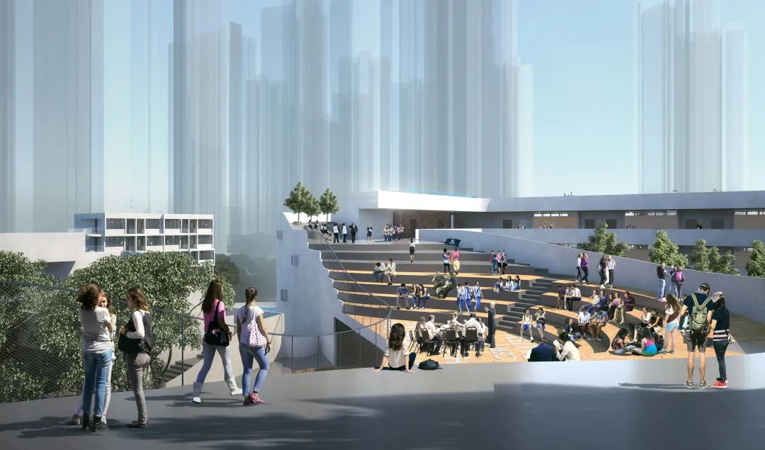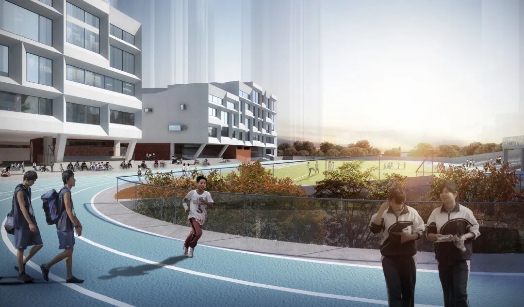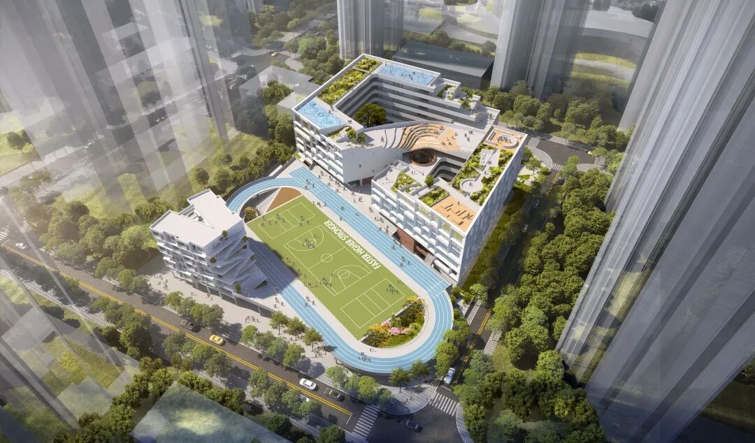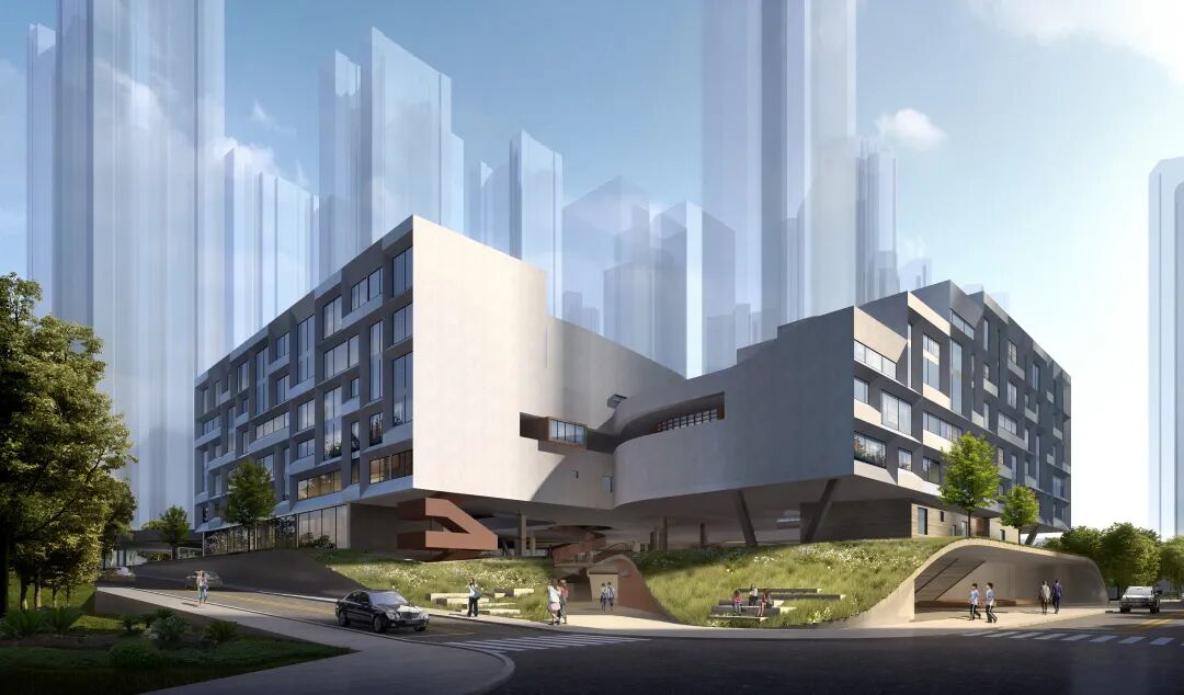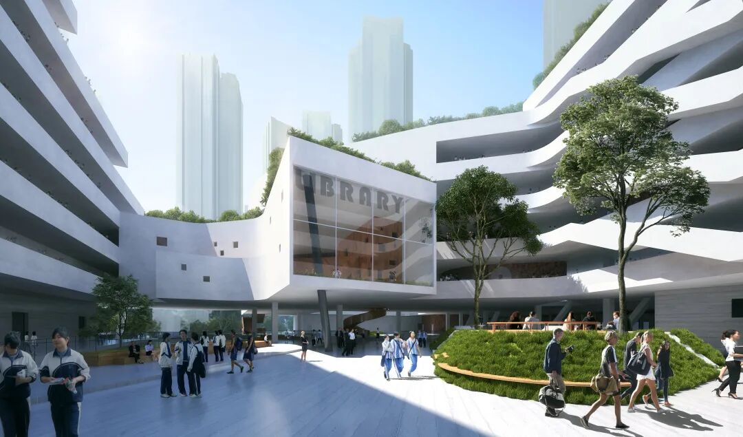 由筑博设计(深圳)有限公司执行首席建筑师、联合公设总经理钟乔担任项目负责人,该项目的方案设计通过独特的“8”字形教学楼营造楼宇森林中的活力平台和创新式书院式教学场景,同时设置的三个绿化庭院给师生营造轻松自然的绿色空间。
