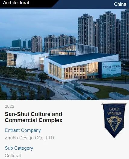 近日,美国缪斯设计奖(MUSE Design Awards)公布了2022年建筑设计类获奖项目,由筑博设计的7个项目分别斩获5枚铂金奖(Platinum Winner)与2枚金奖(Gold Winner)。