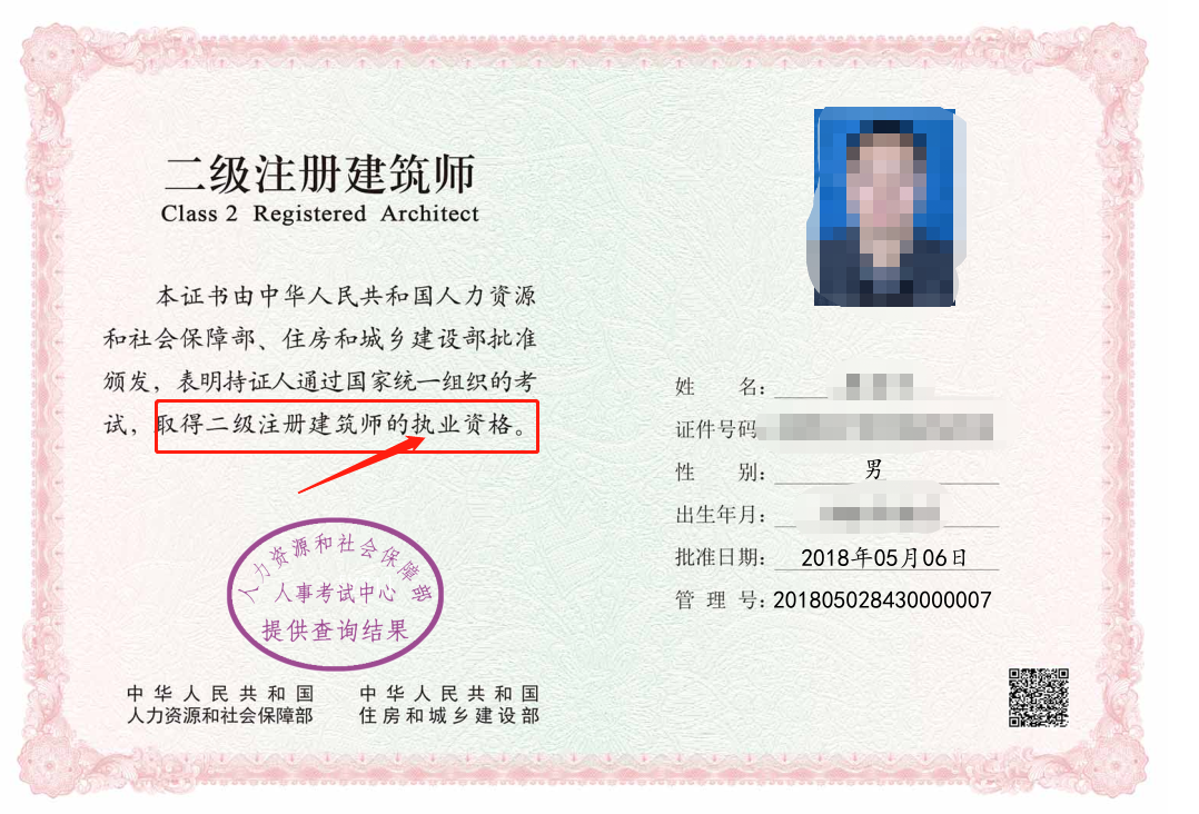 3、原有资格证书 上的“表明持证人通过国家统一组织考试,取得一级注册建筑师执业资格”并不严谨。表述为:“通过国家统一组织考试取得资格证书,通过单位注册后方可取得执业资格” 更为合适。